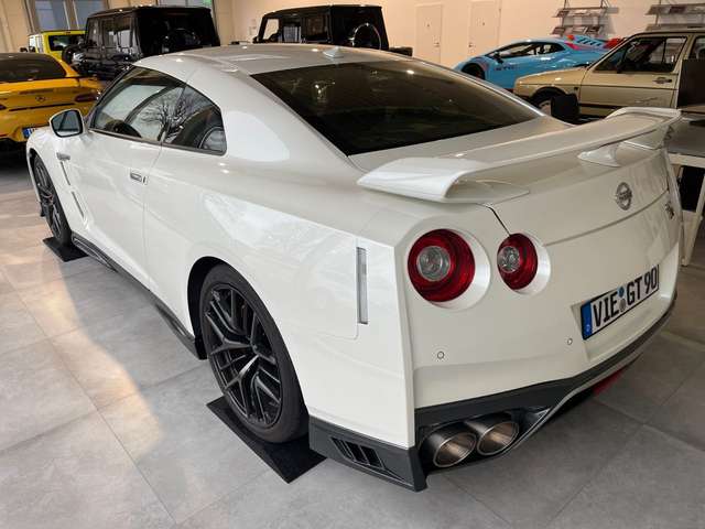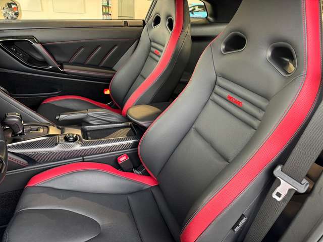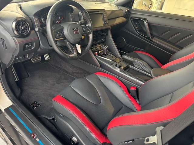 Adaptive Front-Lighting-System (AFS), Airbag Fahrer-/Beifahrerseite und Seitenairbag vorn, Aktive Kopfstützen vorn, Audiobedienung am Lenkrad, Automatische Fahrlichtschaltung, Außenspiegel elektr. anklappbar, Außenspiegel elektr. verstell- und heizbar, Außenspiegel Wagenfarbe, Bordcomputer, Bremsanlage: Brembo, Bremsassistent (Nissan Brake-Assist), Einparkhilfe hinten, Einparkhilfe vorn, Elektr. Bremskraftverteilung (EBD), Fahrassistenz-System: Berganfahr-Assistent, Fernentriegelung Heckklappe/-Deckel, Getränkehalter vorn, Gurtstraffer, Handbremshebel Leder, Heckspoiler Wagenfarbe, Karosserie: 2-türig, Klimaautomatik 2-Zonen, Kopf-Airbag-System, Lenksäule (Lenkrad) verstellbar, Leseleuchte vorn, LM-Felgen, Mittelkonsole, Modellpflege (2), Motor 3,8 Ltr. - 419 kW V6 KAT, Multifunktionsanzeige, Multimedia-System Nissan Connect, Pedale Aluminium, Reifendruck-Kontrollsystem, Schadstoffarm nach Abgasnorm Euro 6, Schalt-/Wählhebelgriff Leder, Sitz vorn links elektr. verstellbar (8-fach), Sitz vorn rechts elektr. verstellbar (4-fach), Sitzbezug / Polsterung: Leder / Velours, Sitzheizung vorn, Sonnenblenden mit Spiegel (beleuchtet), Sound-System BOSE, Sperrdifferential, Sport-Auspuffanlage (Titan), Sport-Fahrwerk Bilstein, Sportsitze, Steckdose (12V-Anschluß), Türgriffe außen Aluminium, Wärmeschutzverglasung mit UV-Schutz