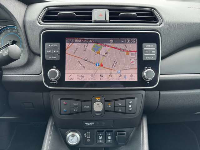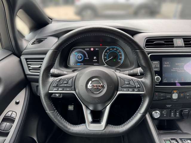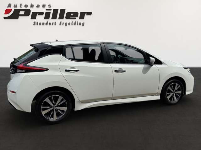 3. Bremsleuchte, Airbag Beifahrerseite, Airbag Fahrerseite, Akustisches Annäherungs signal intermittierend nach vorne abstrahlend bis 30 km/h, Audio-/Radio-Fernbedienung am Lenkrad, Ausstattungs-Paket: Nissan Connect EV, Autom. Begleitfunktion der Beleuchtung (Follow me home), Automatische Fahrlichtschaltung, Außenspiegel elektr. verstellbar, Außenspiegel in Wagenfarbe, Außentemperaturanzeige, Bluetooth-Schnittstelle, Dachantenne, Elektr. Bremskraftverteilung (EBD), Elektromotor 110 kW (cont. 90 kW), Fahrassistenz-System: aktiver Spurhalteassistent mit korrigierendem Bremseingriff, Fahrassistenz-System: Autonomer Notbrems-Assistent, Fahrassistenz-System: Berganfahr-Assistent, Fahrassistenz-System: Fernlichtassistent, Fahrassistenz-System: Moving Object Detection (MOD - Fußgängererkennung und bewegliche Objekterkennung), Fahrassistenz-System: Querverkehrs-Assistent Heck (Rear Cross Traffic Alert, RCTA), Fahrassistenz-System: Totwinkel-Assistent, Fahrassistenz-System: Verkehrszeichenerkennung, Fahrer-Informations-System (FIS) mit Farbdisplay, Fensterheber elektrisch vorn & hinten, Frontscheibe Verbundglas, Getränkehalter vorn & hinten, Getränkehalter in Mittelkonsole, Gurtstraffer, Handschuhfach beleuchtet, Heckleuchten LED, Heckscheibe heizbar, HV-Batterie 40 kWh, Innenspiegel abblendbar, Isofix-Aufnahmen für Kindersitz, Karosserie: 5-türig, Klimaautomatik, Kofferraumabdeckung, Kopf-Airbag-System, Kopfstützen vorn & hinten verstellbar, Ladekabel mit Schukostecker (Mode 2), Ladekabel mit Typ 2-Stecker (Mode 3), Ladevorrichtung Wechselstrom (bis 6,6 kW), Lenksäule (Lenkrad) höhenverstellbar, LM-Felgen, Nebelschlussleuchte, Parkbremse manuell, Pedalerie elektr. einstellbar, Reifendruck-Kontrollsystem, Rückfahrkamera, Rücksitz geteilt/klappbar, Schnellladevorrichtung, Seitenairbag, Sitz vorn links höhenverstellbar, Sitzbezug / Polsterung: Stoff, Smartphone Schnittstelle (Apple CarPlay & Android Auto), Sonnenblenden mit Spiegel (beleuchtet), Start-Stop-Knopf, Steckdose (12V-Anschluß) in Mittelkonsole, Touchscreen-Farbdisplay (7,0 Zoll) in Mittelkonsole, Türgriffe außen verchromt, Uni-Lackierung, Wärmepumpe zur Reichweitenoptimierung, Wärmeschutzverglasung mit UV-Schutz