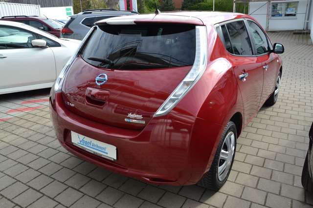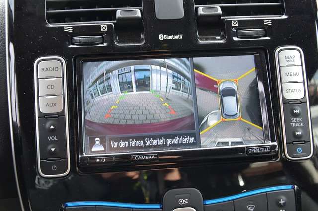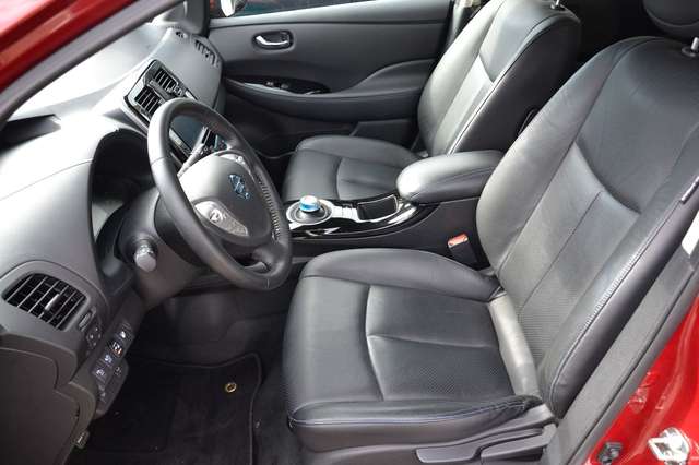 3. Bremsleuchte, Airbag Beifahrerseite abschaltbar, Airbag Fahrer-/Beifahrerseite und Seitenairbag vorn, Audiobedienung am Lenkrad, Ausstattungs-Paket: Nissan Connect EV, Ausstattungs-Paket: Nissan Connect mit Around View Monitor, Automatische Fahrlichtschaltung, Außenspiegel elektr. anklappbar, Außenspiegel Wagenfarbe, Bordcomputer, Bremsassistent (Nissan Brake-Assist), Dachantenne, Dachspoiler, Elektr. Bremskraftverteilung (EBD), Elektromotor 80 kW, Fahrassistenz-System: Berganfahr-Assistent, Fahrzeug mit HV-Leasing-Batterie, Fensterheber elektrisch vorn + hinten, Fzg. mit HV-Leasing-Batterie 30 kWh, Gurtstraffer, Handschuhfach beleuchtet, Innenraumfilter: Pollenfilter, Innenspiegel abblendbar, Isofix-Aufnahmen für Kindersitz, Karosserie: 5-türig, Klimaautomatik mit Zeitsteuerung, Kopf-Airbag-System, Lenksäule (Lenkrad) höhenverstellbar, Leseleuchte vorn, LM-Felgen, Modellpflege, Nebelschlussleuchte, Rücksitz geteilt/klappbar, Schnellladevorrichtung, Sitz vorn links höhenverstellbar, Sitzbezug / Polsterung: Leder, Sonnenblenden mit Spiegel, Sound-System BOSE, Start-Stop-Knopf, Stoßfänger Wagenfarbe, Türgriffe außen verchromt, Verglasung hinten abgedunkelt, Wischerintervall vorn regulierbar, Wärmeschutzverglasung mit UV-Schutz