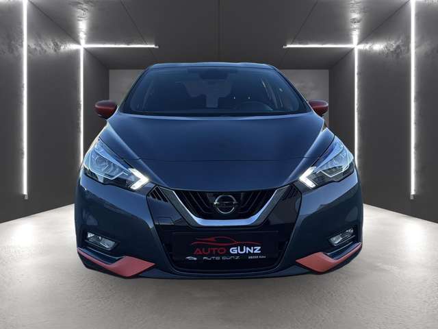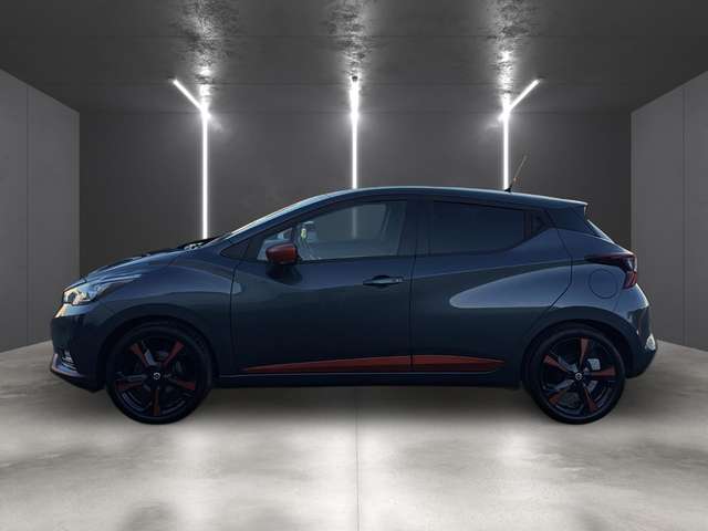 3. Bremsleuchte, Airbag Beifahrerseite abschaltbar, Airbag Fahrer-/Beifahrerseite und Seitenairbag vorn, Ambiente-Beleuchtung, Audio-Paket, Audiobedienung am Lenkrad, Ausstattungs-Paket: Nissan Connect Navigationssystem, Automatische Fahrlichtschaltung, Außenspiegel elektr. anklappbar, Außenspiegel elektr. verstellbar, Außenspiegel heizbar, Außentemperaturanzeige, Blinkleuchten LED in Außenspiegel integriert, Bordcomputer, Bremsassistent (Nissan Brake-Assist), Comfort-Paket, Dachantenne, Dachspoiler, Design-Paket, Drehzahlmesser, Fahrassistenz-System: Berganfahr-Assistent, Fahrassistenz-System: Notbrems-Assistent, Frontscheibe Verbundglas, Gepäckraumabdeckung / Rollo, Geschwindigkeits-Begrenzeranlage, Getränkehalter hinten, Getränkehalter vorn, Gurtstraffer, Heckscheibe heizbar, Heckscheibenwischer, Innenspiegel mit Abblendautomatik, Isofix-Aufnahmen für Kindersitz, Karosserie: 5-türig, Kopf-Airbag-System, Kopfstützen vorn und hinten verstellbar, Lenkrad (Sport/Leder), Lenksäule (Lenkrad) höhen-/längsverstellbar, Leseleuchte vorn, LM-Felgen, Motor 0,9 Ltr. - 66 kW KAT, Nebelschlussleuchte, Reifen-Reparaturset, Reifendruck-Kontrollsystem, Rücksitzbank umklappbar, Schadstoffarm nach Abgasnorm Euro 6, Scheibenwischer mit Intervallschaltung, Sitz vorn links höhenverstellbar, Sitzbezug / Polsterung: Stoff, Sonnenblenden mit Spiegel, Start-Stop-Knopf, Start/Stop-Anlage, Steckdose (12V-Anschluß), TFT-Farbdisplay (5,0 Zoll), Türgriffe innen verchromt