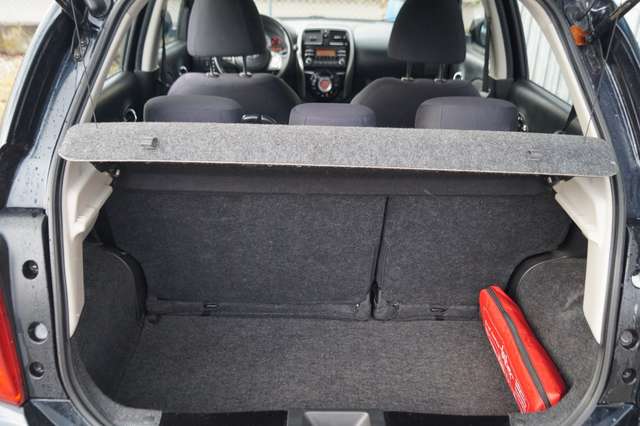 Airbag Beifahrerseite abschaltbar, Airbag Fahrer-/Beifahrerseite und Seitenairbag vorn, Außenspiegel elektr. verstellbar, Außenspiegel Wagenfarbe, Bremsassistent (Nissan Brake-Assist), Comfort-Paket, Fernentriegelung Tankklappe, Frontscheibe Verbundglas, Gepäckraumabdeckung / Rollo, Heckscheibe heizbar, Innenspiegel abblendbar, Isofix-Aufnahmen für Kindersitz, Karosserie: 5-türig, Kopf-Airbag-System, Kopfstützen hinten verstellbar (links/rechts und mitte), Lenksäule (Lenkrad) höhenverstellbar, Leseleuchte vorn, LM-Felgen, Modellpflege, Motor 1,2 Ltr. - 72 kW KAT, Reifendruck-Kontrollsystem, Reserverad als Notrad, Rücksitz geteilt/klappbar, Schadstoffarm nach Abgasnorm Euro 5, Schalt-/Wählhebelgriff Leder, Schaltpunktanzeige, Sitz vorn links höhenverstellbar, Sitzbezug / Polsterung: Stoff, Sonnenblenden mit Spiegel, Start/Stop-Anlage, Steckdose (12V-Anschluß) in Mittelkonsole, Stoßfänger Wagenfarbe, Türverkleidung mit Stoffeinsatz, Verglasung getönt