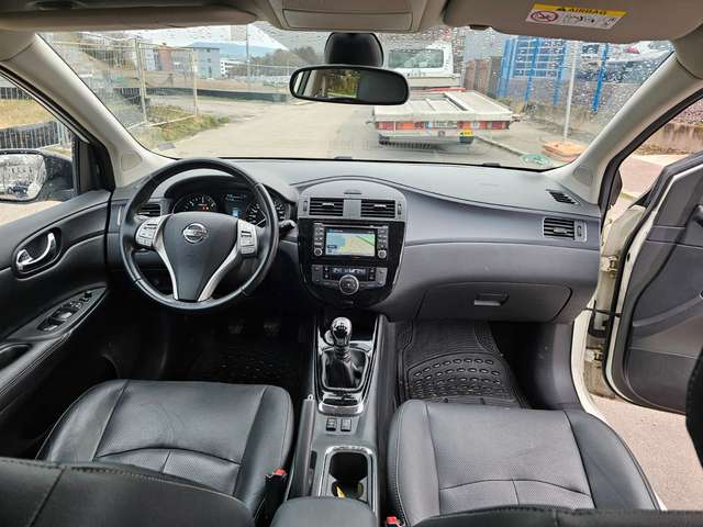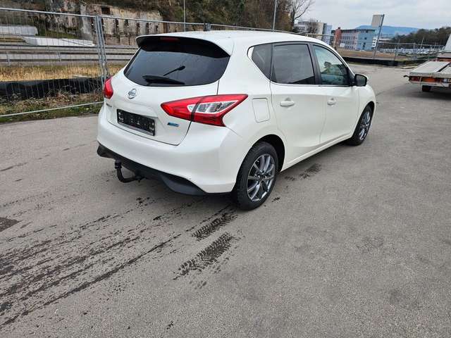 3. Bremsleuchte, Airbag Beifahrerseite abschaltbar, Airbag Fahrer-/Beifahrerseite und Seitenairbag vorn, Audio-/Bordcomputerbedienung am Lenkrad, Audiosystem: Radio mit CD- und MP3-Player, Automatische Fahrlichtschaltung, Außenspiegel elektr. verstellbar, Außenspiegel heizbar, Außenspiegel Wagenfarbe, Blinkleuchte in Außenspiegel integriert, Bordcomputer, Bremsassistent (Nissan Brake-Assist), Design-Paket, Fahrassistenz-System: Autonomer Notbrems-Assistent, Fahrassistenz-System: Kurvenbremskontrolle (Aktive Spurkontrolle), Fahrer-Informations-System (FIS) mit Farbdisplay, Fensterheber elektrisch vorn + hinten, Fernentriegelung Tankklappe, Frontscheibe Verbundglas, Gepäckraumabdeckung / Rollo, Getränkehalter hinten, Getränkehalter vorn, Gurtstraffer, Handschuhfach beleuchtet, Heckscheibe heizbar, Innenspiegel mit Abblendautomatik, Isofix-Aufnahmen für Kindersitz, Karosserie: 5-türig, Kindersicherung, Klimaautomatik 2-Zonen, Kopf-Airbag-System, Kopfstützen vorn und hinten verstellbar, Lenksäule (Lenkrad) höhen-/längsverstellbar, Leseleuchte vorn, LM-Felgen, Mittelarmlehne hinten, Mittelarmlehne vorn verschiebbar, Motor 1,5 Ltr. - 81 kW Turbodiesel KAT, Nebelschlussleuchte, Reifen-Reparaturset, Reifendruck-Kontrollsystem, Rücksitz geteilt/klappbar, Schadstoffarm nach Abgasnorm Euro 5, Schalt-/Wählhebelgriff Leder, Schaltpunktanzeige, Scheibenwischer mit Intervallschaltung, Sitz vorn links höhenverstellbar, Sitzbezug / Polsterung: Leder, Sitzheizung vorn, Sonnenblenden mit Spiegel (beleuchtet), Start/Stop-Anlage, Steckdose (12V-Anschluß) in Mittelkonsole, Technology-Paket, Türgriffe innen verchromt, Wärmeschutzverglasung mit UV-Schutz