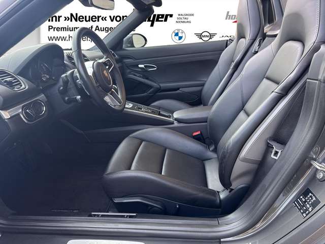 ++Auslieferungsservice bundesweit & kostengünstig++, Verdeck schwarz, Zifferblätter Kombiinstrument, Wärmeschutzglas grün getönt, Wegfahrsperre, Sportsitze, Servolenkung, SPORT Taste, Lederlenkrad, Lederwählhebel, Reifendruckkontrollsystem, Sound Package Plus, Porsche Stability Management (PSM), Porsche Communication Management (PCM), Multitouch- Gestensteuerung, Zoll-Touchscreen, CD-/DVD-Laufwerk, USB-Anschluss, Leichtmetallräder 18 " Boxster Räder, LED-Zusatzleuchten, Klimaanlage, Getriebe 6-Gang-Schaltung, Fensterheber elektrisch, Fahrlichtassistent, Parkbremse elektrisch, Bi-Xenon Scheinwerfer, Außenspiegel elektrisch, Park Assitent vorne/hinten, Außenspiegel anklappbar, Tankdeckel Alu-Optik, Porsche Doppelkupplungsgetriebe (PDK), Servolenkung Plus, Sportendrohre silber, Kraftstofftank 64l, Spurwechselassistent, Tempostat, HomeLink Garagentoröffner, Multifunktionslenkrad, Lenkradheizung, Sitzheizung, Navigation, Connect Plus,