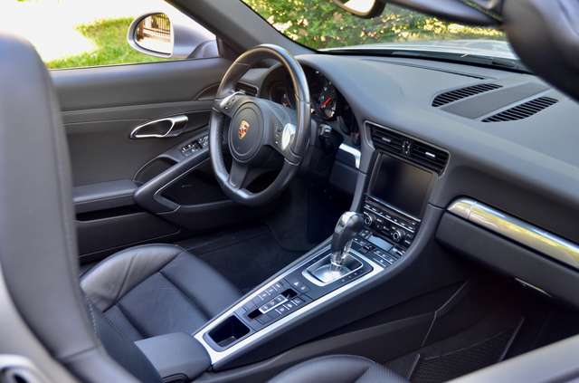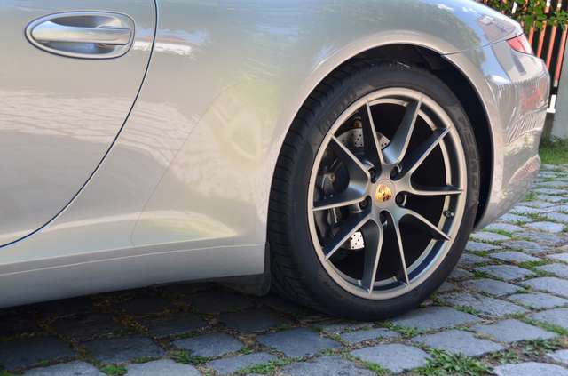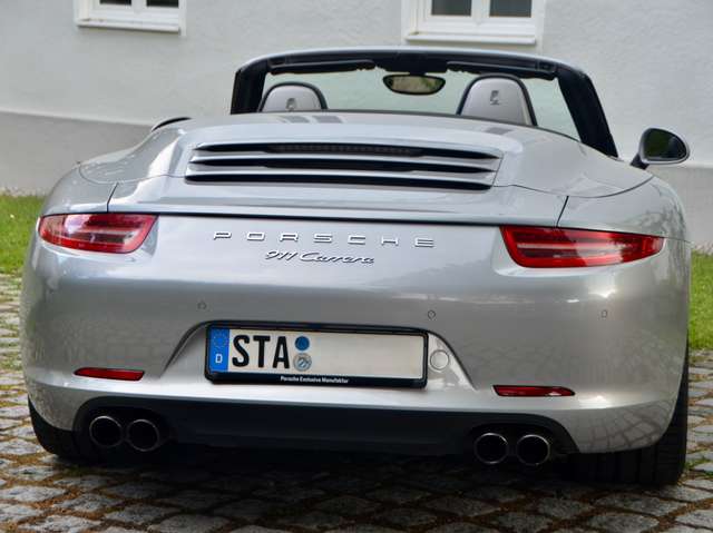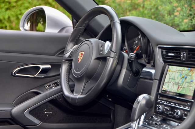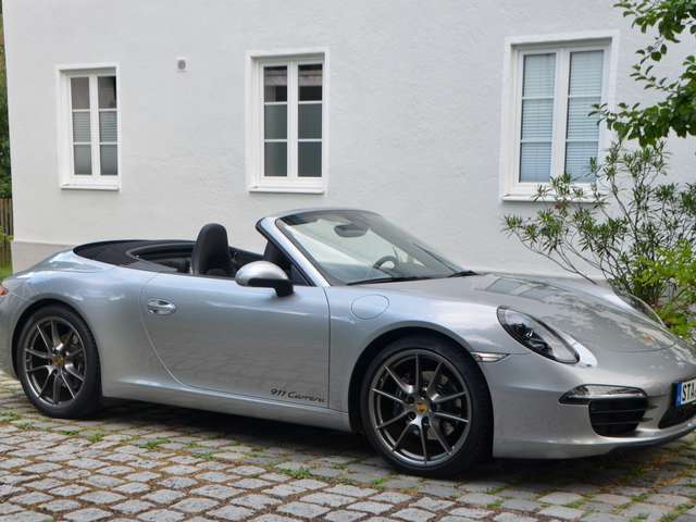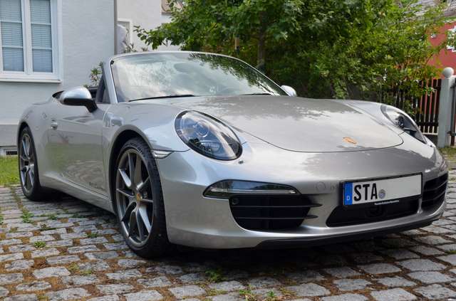Mit dem Doppelkupplungsgetriebe PDK, der Sportabgasanlage (sog. „Klappenanlage“), einstellbarem Fahrwerk PASM, Xenon-Scheinwerfern und dem Bose Soundsystem verfügt das 911 Carrera Cabrio (Modell 991.1) über die wesentlichen gesuchten Ausstattungsmerkmale und zudem noch über einen 6 Zylinder-Saugermotor mit kernigem Boxer-Sound und die seltene (da aufpreispflichtige) Sonderfarbe GT silbermetallic.