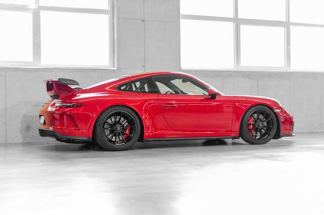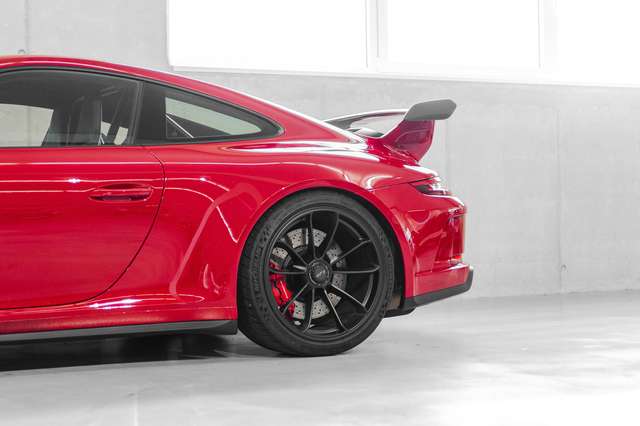 Dieser 911 GT3 aus 2017 in der Farbe Karminrot aus deutscher Auslieferung hebt sich besonders durch seine Ausstattung und den Pflegezustand ab. Konfiguriert von einem detailverliebten Petrolhead und Freund von Motorlegenden, wurde auf Extras wertgelegt die in der Kombination selten zu finden sind. Zu der Ausstattung gehören neben dem Clubsportpaket, das Liftsystem und LED Licht, dazu das Chrono Paket samt Vorrüstung für Laptrigger und natürlich die Sportschalensitze. Weitere Bestandteile der Sonderausstattung umfassen das Interieur-Paket in Aluminium, gebürstet anthrazit, einen 90 Liter Tank, sowie die Räder lackiert in Schwarz (seidenglanz) und eine Rückfahrkamera.