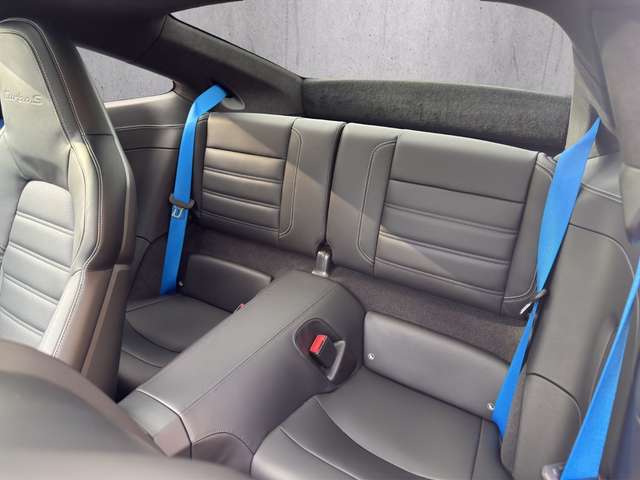 - Panorama-Glasdach und schwarzes Lederinterieur und blaue Sitzgurte