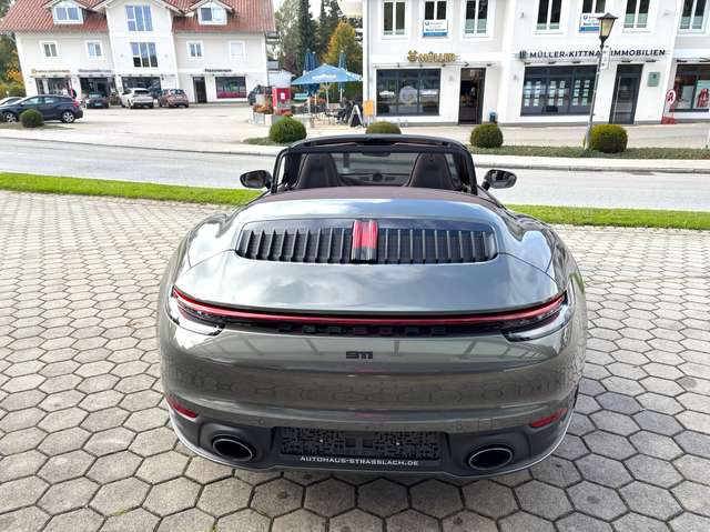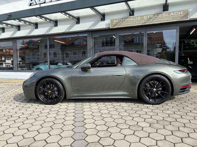Airbag Fahrer-/Beifahrerseite, Antriebsart: Heckantrieb, Außenspiegel asphärisch, links, Außenspiegel elektr. verstell- und heizbar, beide, Blinkleuchten LED, Cabrio, Connect Plus (Bluetooth, Apple CarPlay, WLAN, Vehicle-Tracking-System), Dachhimmel Stoff, Diebstahl-Warnanlage mit Innenraumüberwachung, Drehzahlmesser, Einschaltautomatik für Fahrlicht, Einstiegsblenden mit Modellbezeichnung (Aluminium), Fahrassistenz-System: Berganfahr-Assistent (Hill-Holder), Fahrassistenz-System: Kollisionswarnsystem mit Bremseingriff und Fußgängererkennung, Fußmatten, Getriebe 8-Gang - Doppelkupplungsgetriebe (PDK), Getränkehalter, Heckleuchten LED, Heckscheibe heizbar, Heckspoiler, Innenausstattung: Leder, Serienlederfarbe, Innenraumfilter: Aktivkohlefilter (Geruchsfilter), Interieur-Paket: Diamar Dark Silver, Isofix-Aufnahmen für Kindersitz an Beifahrersitz, Karosserie: 2-türig, Keyless Drive, Kleiderhaken Sitzrückenlehne Leder, Klimaautomatik 2-Zonen, Kopf-Airbag-System Porsche Side Impact Protection System (POSIP), Kopf-Schulter-Airbag vorn (Thoraxbag), Mobile Online Dienste Android Auto, Motor 3,0 Ltr. - 283 kW Turbo KAT, Otto-Partikelfilter (OPF), Parkbremse elektrisch, Porsche Active Suspension Management (PASM), Porsche Communications Management (PCM) inkl. Online - Navigationsmodul, Porsche Traction Management (PTM), Radioempfang digital (DAB+), Reifendruck-Kontrollsystem, Schadstoffarm nach Abgasnorm Euro 6d, Schriftzug Modellreihe, Schwellerabdeckung / -verkleidung lackiert, Sport Taste, Start/Stop-Anlage, Turbo, Uni-Lackierung, Vehicle-Tracking-System (PVTS), Verdeckbetätigung elektrisch, Verglasung getönt, Windschott elektrisch