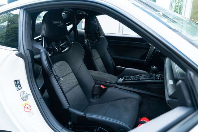 Airbag Fahrer-/Beifahrerseite, Antriebsart: Heckantrieb, Außenspiegel elektr. verstell- und heizbar, beide, Blinkleuchten LED, Connect Plus (Bluetooth, Apple CarPlay, WLAN, Vehicle-Tracking-System), Dach Carbon, Diebstahl-Warnanlage mit Innenraumüberwachung, Drehzahlmesser, Einschaltautomatik für Fahrlicht, Einstiegsblenden mit Modellbezeichnung (Aluminium), Fahrassistenz-System: Berganfahr-Assistent (Hill-Holder), Fensterzierleisten schwarz, Frontscheibe mit Bandfilter oben, Fußmatten, Getriebe 7-Gang - Sport Doppelkupplungsgetriebe (PDK), Getränkehalter, GT3 Cup, Heckflügelspoiler, Flügelstützen schwarz, Heckscheibe heizbar, Innenausstattung: Serienausstattung / Race-Tex, Ziernähte in Kontrastfarbe), Innenraumfilter: Aktivkohlefilter (Geruchsfilter), Interieur-Paket Ziernähte farblich abweichend, Interieur-Paket: Carbon, Karosserie: 2-türig, Keyless Drive, Kleiderhaken Sitzrückenlehne Leder, Klimaautomatik 2-Zonen, Kopf-Airbag-System (Curtain-Airbag), Kopf-Airbag-System Porsche Side Impact Protection System (POSIP), Kopf-Schulter-Airbag vorn (Thoraxbag), Kotflügel vorn Carbon in Wagenfarbe, Leichtbau und Geräuschschutz Verglasung, Leichtbau-Batterie (Lithium-Ionen), Lenkrad (GT Sport / Race-Tex) mit Multifunktion und Schaltfunktion, Mobile Online Dienste Android Auto, Modellbezeichnung lackiert, Motor 4,0 Ltr. - 386 kW KAT, Otto-Partikelfilter (OPF), Parkbremse elektrisch, Porsche Communications Management (PCM) inkl. Online - Navigationsmodul, Porsche Torque Vectoring Plus (PTV Plus), Radioempfang digital (DAB+), Radnaben - Abdeckungen Porschewappen farbig, Radnaben mit Zentralverschluss, Reifendruck-Kontrollsystem, Schadstoffarm nach Abgasnorm Euro 6d, Schriftzug Modell-Schriftzug seitlich, farbig, Schwellerabdeckung / -verkleidung, Sonnenblenden mit Spiegel (beleuchtet), Sport-Auspuffanlage, Endrohre schwarz, Sport-Chrono-Paket, Sport-Fahrwerk (PASM) elektronisch gesteuert, Start/Stop-Anlage, Tankdeckel Exclusive Design, Uni-Lackierung, Vehicle-Tracking-System (PVTS), Vierradlenkung, Vollschalensitze vorn