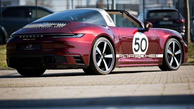 Der Porsche 992.1 Targa 4S als Heritage Edition wurde als limitierte Version von 992 Stück gebaut. Erinnern soll diese Edition an vergangene Zeiten des Porsche 356 und an die ersten Generation 911. Die Farbe Cherry Metallic erinnert an die 1950er Jahre, wo diese als Modefarbe bei Porsche gerne genutzt worden ist.