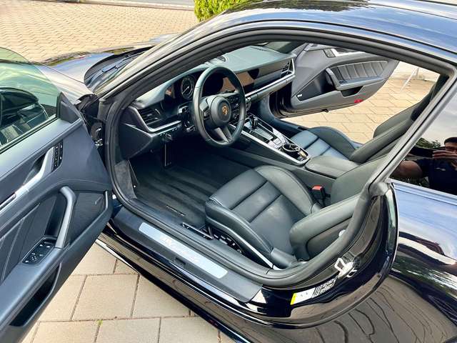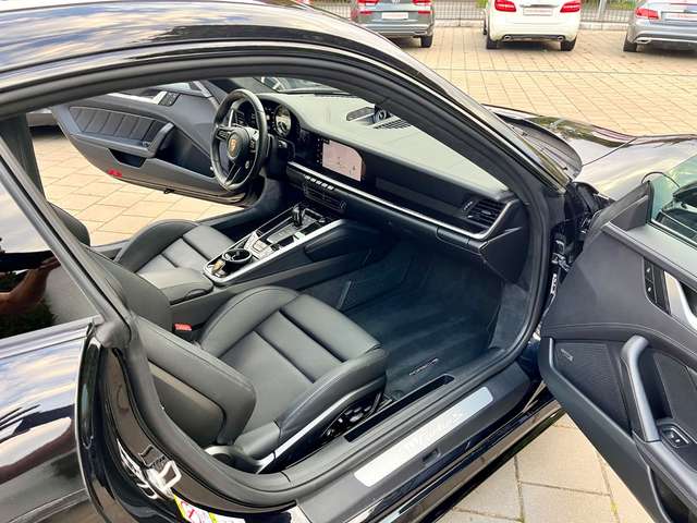 Ablage-Paket, Außenspiegel lackiert, Einstiegsleuchte mit LED-Projektor Porsche-Schriftzug, Exterieur-Paket lackiert, Park-Assistent vorn und hinten inkl. Rückfahrkamera und Surround View, Spurhalteassistent, Spurwechselassistent, Fensterzierleisten schwarz (Hochglanz), Frontscheibe mit Bandfilter oben, Home-Link (Garagentoröffner), Innenraumlicht-Paket / Licht-Design-Paket, Interieur-Paket lackiert, Ionisator zur Luftreinigung, Komfortzugang (Schlüssellose Türentriegelung), Lamellen Lufteinlass im Heckdeckel lackiert, Leder-Paket 930, Lenkrad heizbar (GT Sport / Leder) mit Multifunktion und Schaltfunktion, Liftsystem Vorderachse, LM-Felgen vorn/hinten: 9x20 / 11,5x21 (911 Turbo S Rad), Lufteinlassblende Seitenwand lackiert, Matrix-LED-Scheinwerfer, abgedunkelt, inkl. Porsche Dynamic Light System Plus (PDLS+), Reifen-Reparaturkit, Schiebedach elektrisch (Glas), Schriftzug Porsche lackiert, Servolenkung Plus (geschwindigkeitsabhängig), Sitzbelüftung vorn, Sport-Auspuffanlage, Endrohre schwarz, Sport-Fahrwerk (PASM) elektronisch gesteuert, Tankdeckel Exclusive Design, Verglasung hinten abgedunkelt (Privacyverglasung)