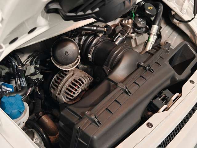 Und dann dieser Lack: Carrara White, in makelloser Tiefe und exzellentem Zustand! Eine Steinschlagschutzfolie deckt die gesamte Front, Dachkante und weitere neuralgische Stellen ab. Ein GT3, der nicht nur mit seiner Optik, sondern mit seiner Geschichte glänzt.