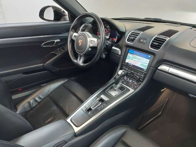 Bi-Xenon-Scheinwerfer inkl. Porsche Dynamic Light System (PDLS), Fahrassistenz-System: Park-Assistent, Felgensterne lackiert, Frontscheibe mit Bandfilter oben, Fzg. ohne Modellbezeichnung, Innenausstattung: erweiterte Lederausstattung, schwarz, Lenkrad (Sport/Leder, 3-Speichen) mit Schaltfunktion, LM-Felgen vorn/hinten: 8x19 / 9,5x19 (Boxster S Rad), Porsche Communications Management (PCM) inkl. DVD - Navigationsmodul (erweitert), Raucher-Paket, Servolenkung Plus (geschwindigkeitsabhängig), Sitzheizung vorn, Sound-Package Plus, Sport-Auspuffanlage, Vorrüstung Mobiltelefon/Handy mit Bluetooth-Schnittstelle, Windschott
