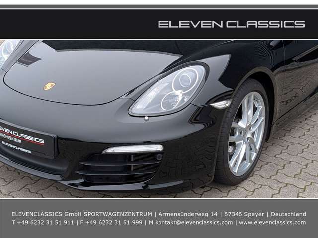 Außenspiegel elektr. anklappbar, Bi-Xenon-Scheinwerfer inkl. Porsche Dynamic Light System (PDLS), Einstiegsblenden (Edelstahl), Fahrassistenz-System: Park-Assistent vorn und hinten, Fußmatten, LM-Felgen vorn/hinten: 8x19 / 9,5x19 (Boxster S Rad), Porsche Communications Management (PCM) inkl. DVD - Navigationsmodul (erweitert), Reifendruck-Kontrollsystem, Servolenkung Plus (geschwindigkeitsabhängig), Sitzheizung vorn, Sound-System BOSE, Tempostat, Vorrüstung Mobiltelefon/Handy mit Bluetooth-Schnittstelle, Windschott