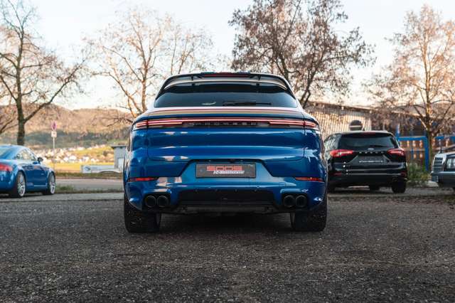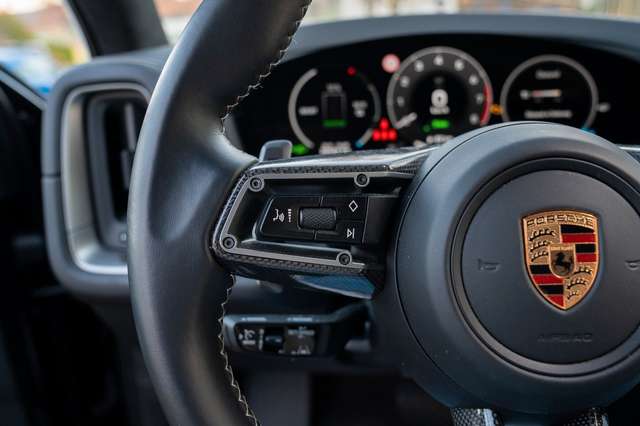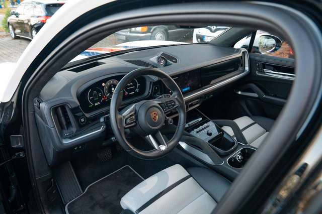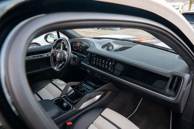 Ambiente-Beleuchtung, Außen-/Innenspiegel mit Abblendautomatik, Außenspiegel lackiert, Bremssättel schwarz (Hochglanz), Dachhimmel Alcantara, Diebstahlsicherung für Räder (Felgenschlösser), Einstiegsblenden (Carbon) beleuchtet, Exterieur-Paket, Fahrassistenz-System: aktiver Park-Assistent vorn und hinten inkl. Rückfahrkamera und Surround View, Fahrassistenz-System: Nachtsicht-Assistent, Fahrassistenz-System: Porsche Dynamic Chassis Control Sport (PDCC Sport) inkl. Torque Vectoring Plus (PTV Plus), Fahrassistenz-System: Porsche InnoDrive inkl. Abstandsregeltempomat, Fahrassistenz-System: Spurwechselassistent, Fußmatten, Head-up-Display, Home-Link (Garagentoröffner), Innenausstattung: Glattleder, Serienlederfarbe, Interieur-Paket lackiert, abweichende Farbe, Interieur-Paket: Ziernähte und Sitzmittelbahn farblich abweichend, Interieur-Zusatzpaket: Haltegriffe Race-Tex, Klimaautomatik 4-Zonen, Komfortsitze vorn inkl. Sitzverstellung 14-Wege und Memory-Paket, Komfortzugang (Schlüssellose Türentriegelung), Ladekabel mit Industriestecker (32 A / 400 V), Ladevorrichtung On-Board-Lader (bis 11 kW), Lenkrad heizbar (GT Sport / Leder) mit Multifunktion, Schaltfunktion und Lenkradblende Carbon, LM-Felgen vorn/hinten: 9,5x21 / 11x21 (Cayenne Turbo Design Rad, Vesuv-Grau), Panorama-Schiebedach zweiteilig vorn elektrisch, Radioempfang digital (DAB+), Radnaben - Abdeckungen Porschewappen farbig, Schriftzug Porsche lackiert, Seitenairbag hinten, Servolenkung Plus (geschwindigkeitsabhängig), Sitze vorn mit Massage- und Belüftungsfunktion, Soft Close Türen, Sound-System BOSE, Sport-Auspuffanlage, Endrohre Bronze, Sport-Design-Paket schwarz, Hochglanz, Türgriffe außen schwarz lackiert (Hochglanz), Verglasung hinten abgedunkelt (Privacyverglasung) inkl. Wärmeschutzverglasung geräuschdämmend, Vierradlenkung