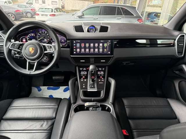 Dieser gebrauchte Porsche Cayenne SUV aus 2022 präsentiert sich in elegantem Blau mit schwarzer Lederausstattung. Mit nur einem Vorbesitzer und lückenloser Servicehistorie bietet dieses Hybrid-Fahrzeug eine beeindruckende Leistung von 462 PS. Der Allradantrieb und die Luftfederung sorgen für optimale Straßenlage unter allen Bedingungen. Die umfangreiche Ausstattung umfasst ein Panorama-Glasdach, elektrische Heckklappe und 360-Grad-Kamera mit Parksensoren vorne und hinten. Im Innenraum erwarten Sie elektrisch verstellbare Sitze mit Memoryfunktion, Ambientbeleuchtung und ein hochwertiges Soundsystem. Die Automatik-Klimaanlage, beheizte Sitze vorne und hinten sowie das beheizbare Lenkrad bieten höchsten Komfort.