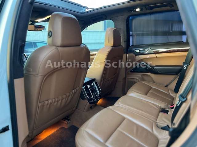 Erleben Sie die beeindruckende Kombination aus Luxus und Leistung mit diesem Porsche Cayenne. Der leistungsstarke 8-Zylinder Motor mit 500 PS und 4,8 Liter Hubraum bietet ein außergewöhnliches Fahrerlebnis. Das Automatikgetriebe und der Allradantrieb sorgen für souveräne Kraftübertragung unter allen Bedingungen. Die weiße Metallic-Lackierung harmoniert perfekt mit dem braunen Lederinterieur und unterstreicht den eleganten Charakter dieses Premium-SUVs. Das Panorama-Glasdach und die getönten Scheiben verleihen dem Innenraum eine besondere Atmosphäre. Die 4-Zonen-Klimaautomatik, belüftete Sitze und Sitzheizung vorne und hinten garantieren höchsten Komfort.