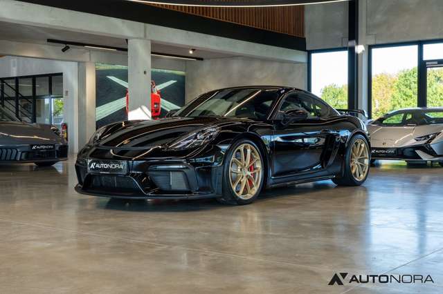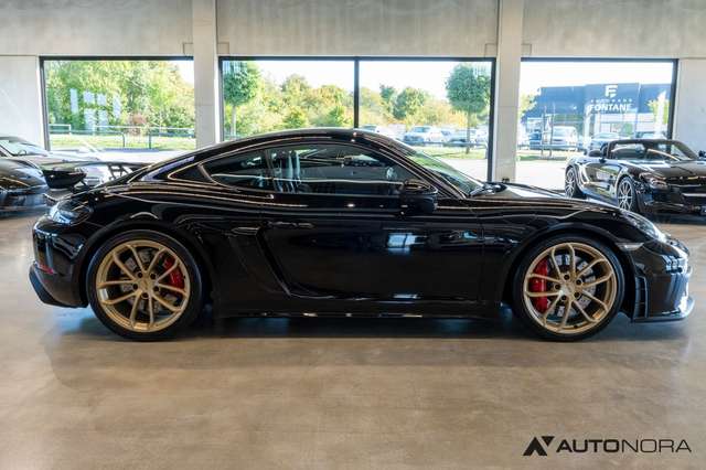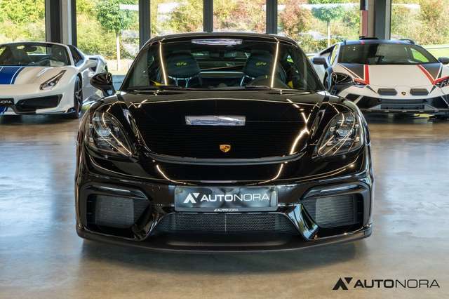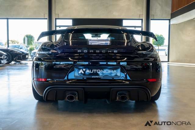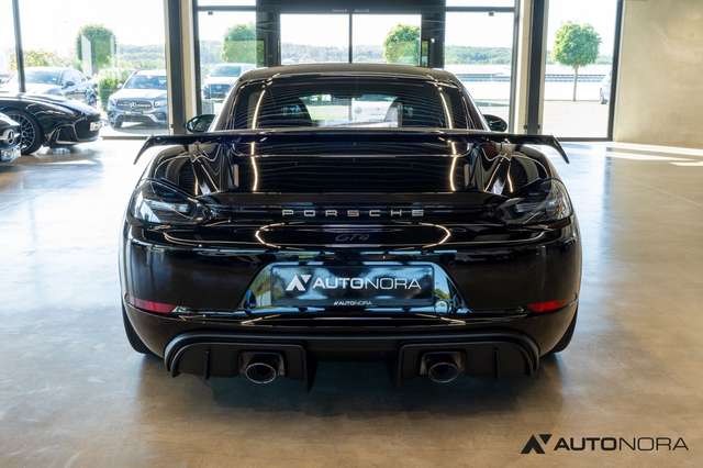 Sportabgasanlage (Klappenauspuff) mit Endrohren in schwarz hochglanz, 6-Gang Schaltgetriebe mit Zweimassenschwungrad, Porsche Stability Management PSM, Porsche Active Suspension Management PASM Sportfahrwerk inklusive Tieferlegung um 30mm, dynamische Getriebelager, 20 Zoll 718 Cayman GT4 Räder, Radnabenabdeckungen mit farbigem Porsche Wappen, Reifendruckkontrollsystem RDK, Porsche Communication Management (PCM) inklusive Handyvorbereitung, Digitalradio, Porsche Torque Vectoring (PTV) inklusive mechanischer Hinterachs-Quersperre, AUTO BLIP Taste zur Aktivierung der dynamischen Zwischengasfunktion, Heckleuchten abgedunkelt