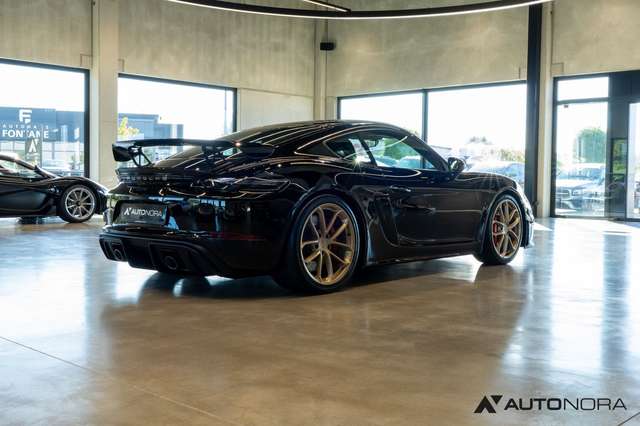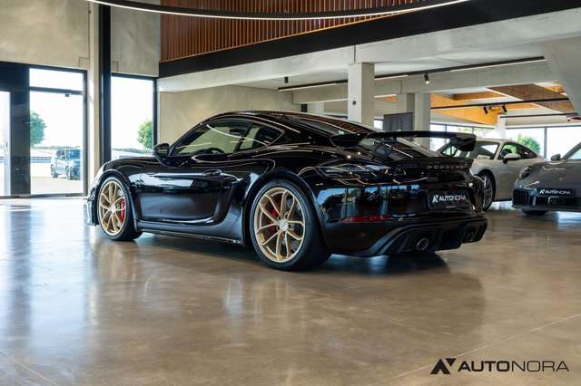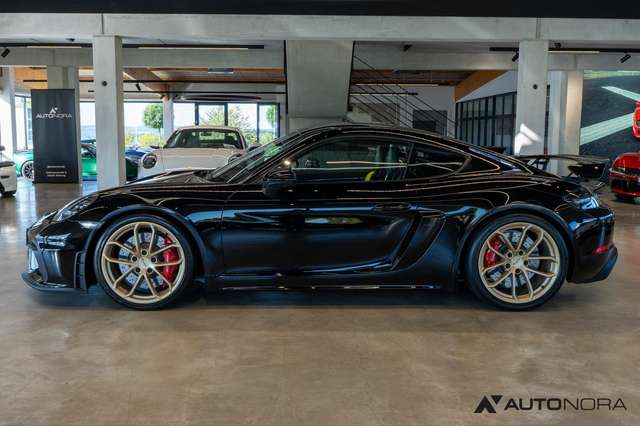Sports exhaust system (switchable exhaust) with tailpipes in high-gloss black, 6-speed manual transmission with dual-mass flywheel, Porsche Stability Management PSM, Porsche Active Suspension Management PASM sport suspension including ride height reduction of 30mm, dynamic gearbox mounts, 20-inch 718 Cayman GT4 wheels, wheel center caps with colored Porsche crest, tire pressure monitoring system TPMS, Porsche Communication Management (PCM) including mobile phone preparation, digital radio, Porsche Torque Vectoring (PTV) including mechanical rear differential lock, AUTO BLIP button for activation of dynamic rev-match function, tinted tail lights