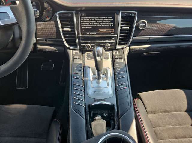 Exterieur-Zusatzpaket schwarz lackiert (Hochglanz), Fahrassistenz-System: Park-Assistent vorn und hinten inkl. Rückfahrkamera, Fahrassistenz-System: Spurwechselassistent, Fahrer-Memory-Paket, Fußmatten, Getränkehalter, Hauptscheinwerfer LED, schwarz, inkl. Porsche Dynamic Light System Plus (PDLS+), Innenraumlicht-Paket / Licht-Design-Paket, Komfortsitze vorn, Lenkrad (Sport / Alcantara, 3-Speichen), LM-Felgen vorn/hinten: 9,5x20 / 11,5x20 (Panamera Sport Rad, schwarz, Hochglanz lackiert), Lufteinlassgitter schwarz hochglänzend, Multimedia Smartphone Applications (Onlinedienste / Apps), Musicplayer-Schnittstelle (Universal-Schnittstelle für iPod / MP3 / ...), Porsche Car Connect, Porsche Communications Management (PCM) inkl. DVD - Navigationsmodul (erweitert), Schalt-/Wählhebelgriff Alcantara / Race-Tex, Schwellerabdeckung / -verkleidung Wagenfarbe Sportdesign, Servolenkung Plus (geschwindigkeitsabhängig), Sonnenschutzrollo an Heckscheibe, elektrisch, Sound-System BOSE, Verglasung hinten abgedunkelt (Privacyverglasung), Vorrüstung Mobiltelefon/Handy mit Bluetooth-Schnittstelle