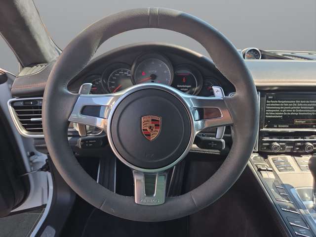 3. Bremsleuchte, Airbag Fahrer-/Beifahrerseite, Aktive Motorhaube, Automatisches Bremsen Differential (ABD), Außen-/Innenspiegel mit Abblendautomatik, Außenspiegel elektr. verstell- und heizbar, beide, Außenspiegel mit Umfeldleuchte LED, Bordcomputer, Bremssättel Rot lackiert, Dachhimmel Alcantara, Distanzscheiben 5 mm (Hinterachse), Einschaltautomatik für Fahrlicht, Einstiegsblenden (Aluminium), Exterieur-Paket schwarz (Hochglanz), Fensterheber elektrisch vorn + hinten, Fußgänger-Schutzsystem, Gepäckraumabdeckung / Rollo, Heckklappe mit automatischem Öffnungs- und Schließsystem, Heckleuchten LED, abgedunkelt, Heckscheibe heizbar, Heckspoiler adaptiv ausfahrbar (4-Wege), Innenraumfilter: Aktivkohlefilter (Geruchsfilter), Interieur-Paket: Carbon, Isofix-Aufnahmen für Kindersitz an Rücksitz, Karosserie: 4-türig, Klimaautomatik, Knieairbag, Kopf-Airbag-System (Curtain-Airbag), Kraftstofftank: 100 Ltr., Lendenwirbelstütze Sitz vorn links, Lendenwirbelstütze Sitz vorn rechts, Lenksäule (Lenkrad) elektr. verstellbar, Modellpflege, Motor 4,8 Ltr. - 324 kW V8 KAT, Motor-Schleppmoment-Regulator (MSR), Parkbremse elektrisch, Porsche Active Suspension Management (PASM), Radnaben - Abdeckungen Porschewappen farbig, Radstand 2920 mm, Reifen-Reparaturkit, Reifendruck-Kontrollsystem, Schadstoffarm nach Abgasnorm Euro 6, Seitenairbag vorn, Sitzbezug / Polsterung: Leder / Alcantara, Sitzheizung vorn, Sport-Auspuffanlage, Sport-Chrono-Paket, Traktionskontrolle
