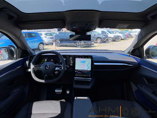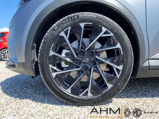 - Weiteres: Reifendruck-Kontrollsystem, Rückfahrkamera, Reifen-Reparaturkit, Dachreling, Heckleuchten LED, Ambiente-Beleuchtung, Kopf-Airbag-System (Windowbag), LM-Felgen, Innenausstattung: Stoff, grau, Scheinwerfer Full-LED, mit adaptivem Kurvenlicht, Schlechtwetter-Licht, LED-Signatur (Pure Vision), USB-Anschlüsse (Typ C) Mittelkonsole hinten, USB-Anschlüsse (Typ C) Mittelkonsole vorn, Armaturenbrett Kunstleder, Einparkhilfe vorn, hinten und seitlich, Innenraumfilter: Pollenfilter, Mittelkonsole mit Armlehne und Staufach, Smartphone kabellose Schnittstelle (Apple CarPlay & Android Auto), Fahrassistenz-System: Autonomer Notbrems-Assistent mit Frontkollisionswarnung und Fußgänger- und Fahrraderkennung, Elektromotor 160 kW (cont. 55 kW), Mittelarmlehne hinten mit Getränkehalter, Tablet-Halterung und USB-Anschlüsse, Kombiinstrument digital (12 Zoll), Lenkrad (Leder/Alcantara), Sitzbezug / Polsterung: Stoff/Kunstleder, Titanschwarz mit Ziernähte in Blau, Infotainment-System: OpenR link (12 Touchscreen, Arkamys Auditorium Sound, Navigationssystem mit Google Maps), Panoramadach Solarbay fest (Glas), Bicolor-Lackierung Dolomit-Grau / Schiefer-Grau Matt, Dach Black Pearl Schwarz, Anti-Blockier-System (ABS), Tagfahrlicht LED, Lenksäule (Lenkrad) höhenverstellbar, Seitenairbag vorn, Licht- und Regensensor, Rücksitzlehne geteilt/klappbar, Airbag Beifahrerseite, Airbag Fahrerseite, Freisprecheinrichtung (Bluetooth) mit Sprachsteuerung, Verglasung hinten stark abgedunkelt, Dynamisches Kurvenlicht, Wärmepumpe für Heizungs-/Klimaanlage, Abstandswarner, Antriebsart: Frontantrieb, Außenausstattung: Esprit Alpine, Außenspiegel elektr. anklappbar, Beifahrerairbag abschaltbar, Berg-Anfahr-Assistent (HSA), Dachantenne im Haifischflossen-Design, Eco Mode (Fahrmodusschalter), elektr. Fensterheber mit Einklemmschutz, Elektron. Stabilitäts-Programm, Fernlichtassistent, Frontscheibe wärmeabweisend, Geräuschsimulator (Außensound), Gurtstraffer, Gurtwarner, Heckklappenbetätigung elektrisch, Heckscheibe heizbar, HV-Batterie 87 kWh, Induktionsladeschale für Smartphone, Innenspiegel mit Abblendautomatik, Isofix-Aufnahmen für Kindersitz, Klimaautomatik 2-Zonen mit autom. Umluft-Control, Lendenwirbelstütze elektr. verstellbar, Lenkrad heizbar, Lenksäule höhen-/längsverstellbar, Müdigkeitserkennungs-Sensor, Multi-Sense (Fahrmodusschalter), Nebelschlussleuchte LED, Radioempfang digital (DAB+), Sicherheitssystem mit automatischem Notruf (ERA GLONASS / eCall), Sitzheizung vorn, Sitzhöhenverstellung, Spiegel schwarz lackiert, Spurhalteassistent Aktiv, Verkehrszeichenerkennung mit Geschwindigkeits-Warnanzeige, Zentralverriegelung / Startanlage Handsfree Entry & Drive, ZV mit Fernbedienung