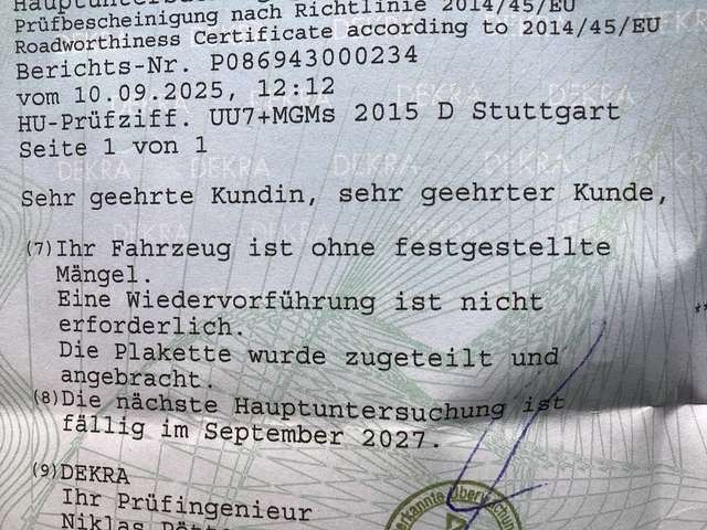 Die Hauptuntersuchung wurde erneuert. TÜV bis 09/2027.