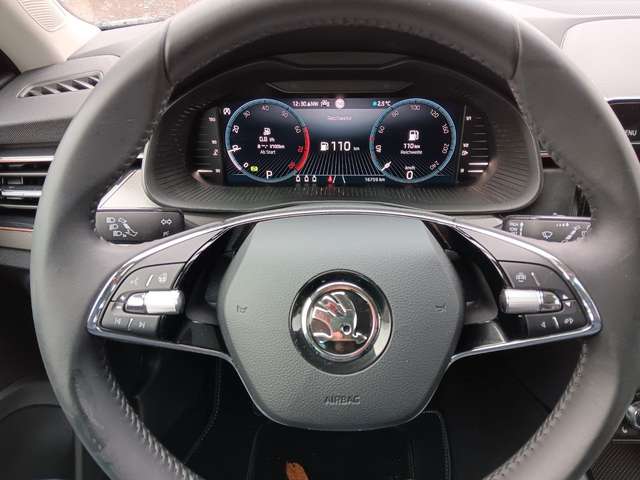 Ambiente-Beleuchtung LED in Rot, Anhängerkupplung Vorbereitung, Außenspiegel elektr. verstell-, heiz- und anklappbar, mit Abblendautomatik, Chromzierleisten an Seitenfenstern, Einparkhilfe vorn und hinten, Fahrassistenz-System: Autom. Distanzregelung (ACC) mit Frontradar-Assistent (bis 210 km/h), Innenausstattung: Dekoreinlagen Graphit Grau, Kombiinstrument digital (virtual cockpit), Reserverad als Notrad, Rückfahrkamera, Seitenscheiben hinten und Heckscheibe abgedunkelt (SunSet), Sonderlackierung Candy-weiss uni, Sprachsteuerung für Infotainment-System, Wireless SmartLink