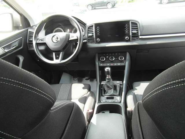Front- Seiten-Kopf- und Fahrer-Knieairbag, ABS,ASR,ESP und Bremsassistent, Wireless SmartLink, Berganfahrassistent, Elektr.Parkbremse inkl.Auto-Hold-Funk., Multifunktionsanzeige im Kombiins.,Farb., Getönte Scheiben, Navigationssystem Business Amundsen mit Digitaler Radioempfang DAB, Dachreling, Drehzahlmesser, Mittelarml. hi. m. Durchlademöglichkeit, Leichtmetallfelgen, Fensterheber elektrisch vorn und hinten, Komfort Telefonfreispr. inkl. Phonebox mit Induktiv Ladefunktion, Smart Link, Apple Carplay und Android Auto, LED Hauptscheinwerfer und Nebelscheinwerfer, elektr. Heckklappe, Heckscheiben-Wisch-/Waschanlage, Innenspiegelabblendung, automatisch, ISOFIX-Vorbereitung a.d. äußeren Rücksi., EASY START, schlüsseloses Start-Stopp, Kessy - schl. Zugangs- u. Start-Stopp-S., Klimaanlage Climatronic (2-Zonen), Kopfstützen vorn und hinten höhenverst., Sportsitzevorn, Fahrersitz elektr. einstellbar mit Memoryspeicher, Einstellbare Lendenwirbelstützen vorn, Lederlenkrad mit Multifunktionstasten, Frontradarassistent inkl.City-Notbrensfunktion, Parksensoren vorn & hinten, Fahrlichtassistent und Regensensor, Rücksitzlehne 60:40 geteilt umklap., Außensp. el. einst./beheizb. m. Seitenbl, Außenspiegel elektrisch anklappbar, 6-Gang-Schaltgetriebe, Servolenkung elektromechanisch, Beheizbare Vordersitze, Dritte Bremsleuchte, Heckscheibe beheizbar, Reifendrucküberwachung, Scheibenwaschdüsen beheizt, vorn, Speedlimiter, Steckdose 12V, Bremsassistent, hydraulisch, Reifen-Mobilitätsset, Ablagefach auf dem linken Radhauskasten, Ablagefach auf der Armaturentafel Geschl, Ablagefächer hinter den Radhauskasten, Ablagen, Allergenfilter, Dekoreinlage Style, Handschuhfach beleuchtet, Kofferraumabdeckung, fest, Mittelarmlehne vorn, inkl. Ablagefach, Netzprogramm im Kofferraum, Polster Stoff, Sicherheitsgurte Karoq, Sitze: Vordersitze, höheneinstellbar, Verzurrösen im Kofferraum, LED-Heckleuchten, Stoßfänger teilweise in Wagenfarbe lack., MSR (Motorschleppmomentregelung), Ottopartikelfilter, Radiozubehör 8 Lautsprecher, Care C.: Proakt. Dienste Laufz. 14 Jahre, eCall, Skoda Care Connect, Elektronische Querdifferenzialsp. (XDS+), Start/Stopp-Automatik/Bremsenergierückg., Halogen-Reflektorsch. m LED Tagfahrlicht, Geschwindigkeitsregelanlage, Radioz.: USB-Anschluss i der Mittellkon., Wegfahrsperre, Zentralverriegelung m. Funkfernbedienung