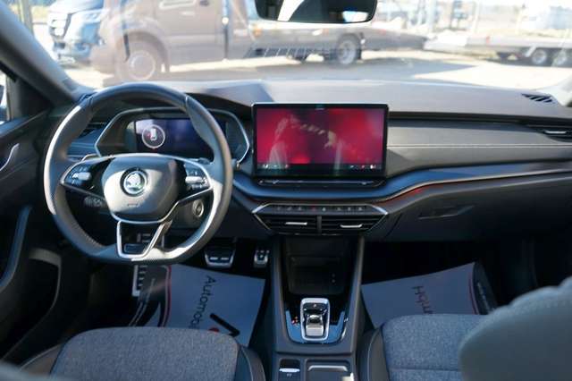 Fensterheber elektrisch vorn + hinten, Fensterzierleisten schwarz, hochglänzend, Freisprechanlage Telefon mit Bluetooth, Frontkamera, Fußraumbeleuchtung vorn und hinten, Gepäckraumabdeckung / Rollo, Geschwindigkeits-Begrenzeranlage, Heckleuchten LED (Kristallglas-Optik), Heckscheibenwischer, Induktionsladeschale für Smartphone, Innenausstattung: Dekoreinlagen Dark Carbon, Innenausstattung: Luftausströmer Schwarz, Innenspiegel mit Abblendautomatik, Isofix-Aufnahmen für Kindersitz an Beifahrersitz und Rücksitze außen (inkl. Top Tether), Karosserie: 5-türig, Kindersicherung, manuell, Klimaanlage Climatronic 2-Zonen, Knieairbag Fahrerseite, Kofferraumbeleuchtung, Kombiinstrument digital (virtual cockpit plus), Kopf-Airbag-System, Kühlergrill schwarz, Lehnenentriegelung der Rücksitzlehne im Kofferraum, Lenkrad (Sport/Leder - 3-Speichen, unten abgeflacht) mit Multifunktion und Schaltfunktion, Lenksäule (Lenkrad) verstellbar (vertikal / axial), Leseleuchten vorn und hinten, Leuchtweitenregelung, LM-Felgen, Modellpflege, Motor 1,5 Ltr. - 110 kW 16V TSI mHEV Mild-Hybrid (DXDB), Motor-Schleppmoment-Regulator (MSR), Parkbremse elektronisch, Progressivlenkung, Radioempfang digital (DAB+), Reifen-Reparaturkit, Reifendruck-Kontrollsystem, Rückfahrkamera, Rücksitz geteilt / klappbar (60:40) Mittelarmlehne und Durchladefunktion, Rücksitzlehne geteilt/klappbar, Schadstoffarm nach Abgasnorm Euro 6e, Scheinwerfer LED, Seitenairbag vorn mitte (Center-Airbag), Servolenkung elektronisch (Servotronic), Sitzbezug / Polsterung: Stoff/Kunstleder Sportline schwarz, Sitzheizung vorn, SKODA Care Connect & Infotainment Online, Sonnenblenden mit Spiegel (LED-Beleuchtung), Sport-Fahrwerk, Sportsitze, Steckdose (12V-Anschluß) im Koffer-/Laderaum, Stoßfängerblende und Heckdiffusor schwarz glänzend, Türen mit Warnleuchte, Türgriffe innen verchromt, Verzurrösen Koffer-/Laderaum, Vorbereitung für Alkohol-Wegfahrsperre (Alcolock), Warnanlage für Sicherheitsgurte hinten, Warnanlage für Sicherheitsgurte, Fahrer-/Beifahrerseite, Wireless SmartLink, Zentralverriegelung / Startanlage Kessy-Go