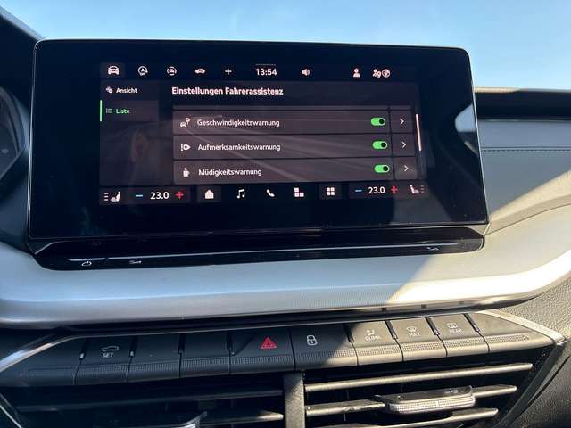 2 USB-Anschlüsse vorn und 2 USB-Ladeanschlüsse im Fond und USB-Ladeanschluß am Rückspiegel, 3-Punkt-Sicherheitsgurte hinten, 8 Lautsprecher, Ablagefächer (Gepäck-/Laderaum), Ablagetasche an Vordersitzlehnen, Airbag Beifahrerseite abschaltbar, Airbag Fahrer-/Beifahrerseite, Antriebs-Schlupfregelung (ASR), Außenspiegel elektr. anklappbar, Außenspiegel elektr. verstell- und heizbar, Außenspiegel mit Abblendautomatik, links, Außenspiegel und Türgriffe außen in Wagenfarbe, Brillenfach, Dachhimmel grau, Dachreling, Doppeltonfanfare, Einparkhilfe vorn und hinten, Elektron. Querdifferentialsperre (XDS), Fahrassistenz-System: Abbiegebremsfunktion und Ausweichunterstützung, Fahrassistenz-System: Auffahrwarnsystem mit City-Notbremsfunktion (Frontradar-Assistent), Fahrassistenz-System: Berganfahr-Assistent (Hill-Holder), Fahrassistenz-System: Fahrprofilauswahl, Fahrassistenz-System: Multikollisionsbremse (Multi Collision Brake), Fahrassistenz-System: Müdigkeitserkennung, Fahrassistenz-System: Spurhalteassistent (Lane Assist), Fahrassistenz-System: Verkehrszeichenerkennung, Fensterheber elektrisch vorn + hinten, Freisprechanlage Telefon mit Bluetooth, Frontkamera, Gepäckraumabdeckung / Rollo, Geschwindigkeits-Begrenzeranlage, Heckleuchten LED, Heckscheibenwischer, Induktionsladeschale für Smartphone, Infotainment-System mit 10" Display, Innenausstattung: Luftausströmer Schwarz, Innenspiegel mit Abblendautomatik, Interieur-Design-Paket Loft, Isofix-Aufnahmen für Kindersitz an Beifahrersitz und Rücksitze außen (inkl. Top Tether), Karosserie: 5-türig, Kindersicherung, manuell, Klimaanlage Climatronic 2-Zonen, Knieairbag Fahrerseite, Kofferraumbeleuchtung, Kombiinstrument digital (virtual cockpit plus), Kopf-Airbag-System, Kühlergrill mit Chromrand, Lenkrad (Leder) mit Multifunktion und Schaltfunktion, Lenksäule (Lenkrad) verstellbar (vertikal / axial), Leseleuchten vorn und hinten, Leuchtweitenregelung, Licht- und Regensensor, LM-Felgen, Modellpflege, Motor 1,5 Ltr. - 110 kW 16V TSI mHEV Mild-Hybrid (DXDB), Motor-Schleppmoment-Regulator (MSR), Parkbremse elektronisch, Radioempfang digital (DAB+), Reifen-Reparaturkit, Reifendruck-Kontrollsystem, Rücksitz geteilt / klappbar (60:40) Mittelarmlehne und Durchladefunktion, Rücksitzlehne geteilt/klappbar, Schadstoffarm nach Abgasnorm Euro 6e, Scheinwerfer LED, Seitenairbag vorn mitte (Center-Airbag), Servolenkung elektronisch (Servotronic), Sitze vorn höhenverstellbar inkl. Lendenwirbelstütze verstellbar, Sitzheizung vorn, SKODA Care Connect & Infotainment Online, Sonnenblende links mit Spiegel, Steckdose (12V-Anschluß) im Koffer-/Laderaum, Türgriffe innen verchromt, Verglasung getönt, Verzurrösen Koffer-/Laderaum, Vorbereitung für Alkohol-Wegfahrsperre (Alcolock), Warnanlage für Sicherheitsgurte hinten, Warnanlage für Sicherheitsgurte, Fahrer-/Beifahrerseite, Wireless SmartLink, Zentralverriegelung / Startanlage Kessy-Go