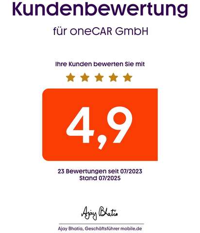 Fahrzeugbesichtigungen sind ausschließlich nach vorheriger Terminvereinbarung möglich. Weitere Fotos und Angebote finden Sie unter www.one-car.eu