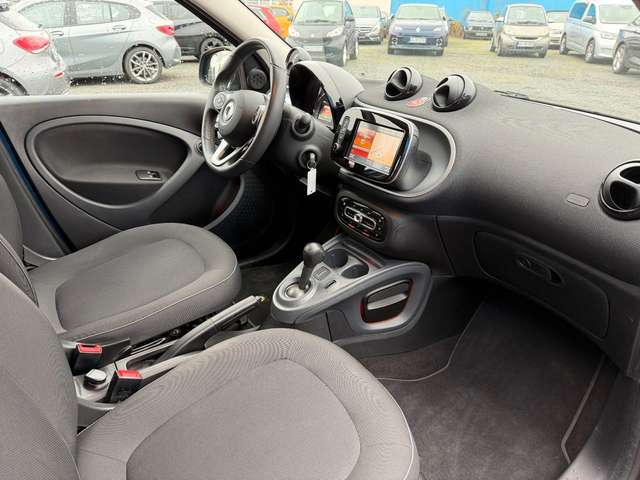 Die Ausstattung überzeugt mit Klimaautomatik, Navigationssystem, Bluetooth-Freisprecheinrichtung, LED-Tagfahrlicht, Touchscreen und USB-Anschluss. Praktische Helfer wie Berganfahrhilfe, Start-Stopp-System, Tempomat, Geschwindigkeitsbegrenzer und Parksensoren hinten erleichtern das Fahren. Der Smart bietet zudem beheizbare Vordersitze, elektrische Fensterheber und Außenspiegel.