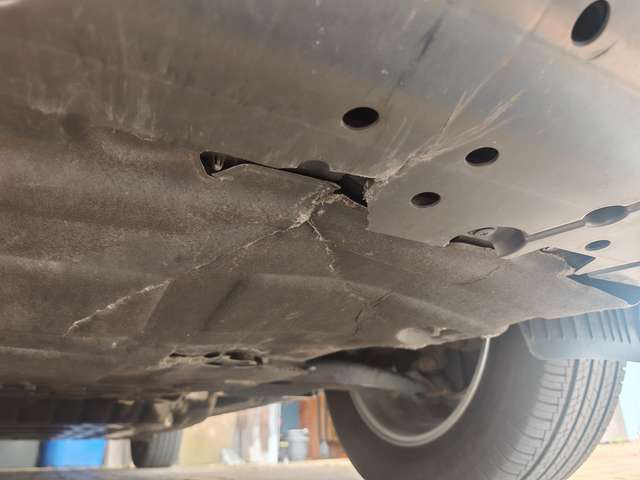 Unterboden durch einen Stein beschädigt.