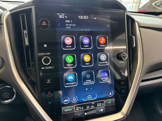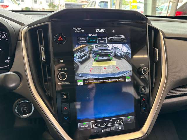 Airbag Fahrer-/Beifahrerseite, Akustischer Fußgängerschutz (Außensound), Anti-Submarining-Airbag Beifahrer, Aufprallschutz rundum, Auto-Hold-Funktion, Automatische Fahrlichtschaltung / Lichtsensor, AUX-IN-Anschluss, Außenspiegel Anthrazit-Grau, Außenspiegel elektr. anklappbar, Außenspiegel elektr. verstell- und heizbar, Außenspiegel mit Totwinkel-Assistent, Außentemperaturanzeige, Blinkleuchten LED in Außenspiegel integriert, Bluetooth-Schnittstelle, Bremsassistent, Dachantenne im Haifischflossen-Design (schwarz), Dachreling Anthrazit-Grau, Dachspoiler Wagenfarbe, Einparkhilfe hinten, Elektr. Bremskraftverteilung, Elektromotor 12 kW (Hybridantrieb), Fahrassistenz-System: aktiver Spurhalteassistent, Fahrassistenz-System: Anfahr-Assistent (Stop&Go), Fahrassistenz-System: Antriebsmomentkontrolle (Torque Vectoring), Fahrassistenz-System: Ausweich-Assistent, Fahrassistenz-System: Bergabfahrhilfe, Fahrassistenz-System: Berganfahrhilfe, Fahrassistenz-System: EyeSight, Fahrassistenz-System: Fahrer-Erkennung (Driver Monitoring System) erweitert, Fahrassistenz-System: Fernlichtassistent, Fahrassistenz-System: Frontkollisionswarnung, Fahrassistenz-System: Kollisionswarnsystem hinten, Fahrassistenz-System: Querverkehrs-Assistent, Fahrassistenz-System: Sicherheitssystem mit automatischem Notruf (ERA GLONASS / eCall), Fahrassistenz-System: Spurwechselassistent, Fahrassistenz-System: Straßenrand-Erkennung (Road Edge Detection), Fahrassistenz-System: Totwinkel-Assistent, Fahrassistenz-System: Verkehrszeichenerkennung, Fahrer-Informations-System (FIS) mit Farbdisplay, Fensterheber elektr., vorn mit Komfortschaltung und Einklemmschutz, Freisprechanlage Bluetooth, Gepäck-/Laderaumleuchte, Gepäckraumabdeckung / Rollo, Geschwindigkeits-Regelanlage (Tempomat) mit Abstandsregelung, Getränkehalter, Gurtstraffer, Handschuhfach beleuchtet, Heckleuchten LED, Heckscheibe heizbar, Heckscheibenwischer mit Intervallschaltung, Induktionsladeschale für Smartphone, Infotainment-Center 11,6"-Display (Touchscreen), Innenausstattung: Interieurleisten Schwarz, Innenausstattung: Leder, Innenspiegel mit Abblendautomatik, Intelligenter Geschwindigkeits-Begrenzer, Isofix-Kindersitz-System, Karosserie: 5-türig, Kindersicherung, Klimaautomatik 2-Zonen, Knieairbag Fahrerseite, Kopf-Airbag-System (Windowbag), Kühlerjalousie, Aktiv, Lendenwirbelstütze Sitz vorn links, Lenkrad (Leder) mit Multifunktion, Ziernaht farbig, Lenkrad heizbar, Lenksäule (Lenkrad) höhenverstellbar, Lenksäule (Lenkrad) längsverstellbar, Leseleuchte, Leuchtweitenregelung automatisch, LM-Felgen, Mittelarmlehne hinten, Mittelkonsole, Motor 2,0 Ltr. - 100 kW Mild-Hybrid, Navigationssystem, Navigationssystem mit Georeferenzierung, erweiterter Umfang (what3words), Nebelscheinwerfer LED, Nebelschlussleuchte LED, NFC Funksystem (Near Field Communication), Notbrems-Warnblinkautomatik, Otto-Partikelfilter (GPF), Parkbremse elektronisch, Radstand Standard, Reifen-Reparaturset, Reifendruck-Kontrollsystem, Rückfahrkamera, Rücksitzlehne geteilt / klappbar, Schadstoffarm nach Abgasnorm Euro 6e, Schalt-/Wählhebelgriff Leder, Scheibenwaschanlage, Scheinwerfer LED mit dynamischem Kurvenlicht, Schiebe-/Hebedach elektrisch, Seitenairbag vorn, Seitenairbag vorn mitte (Center-Airbag), Service-System: Online Update, SI-Drive, Sicherheitsgurte höhenverstellbar, Sitz vorn links elektr. verstellbar (10-fach), Sitz vorn rechts elektr. verstellbar (8-fach), Sitzbezug / Polsterung: Leder, Sitzheizung vorn, Sonnenblenden mit Spiegel (beleuchtet), Sprachbediensystem Spracherkennung, Stabilitäts-Programm X-Mode mit 2 Modi, Start-Stop-Knopf, Start/Stop-Anlage, Steckdose (12V-Anschluß) in der Mittelkonsole, Stoßfänger Wagenfarbe, Tagfahrlicht LED, Türgriff außen Wagenfarbe, Türgriffe innen verchromt, USB-Anschlüsse (2) hinten, Verglasung getönt, Verglasung hinten abgedunkelt, Zeituhr (digital)