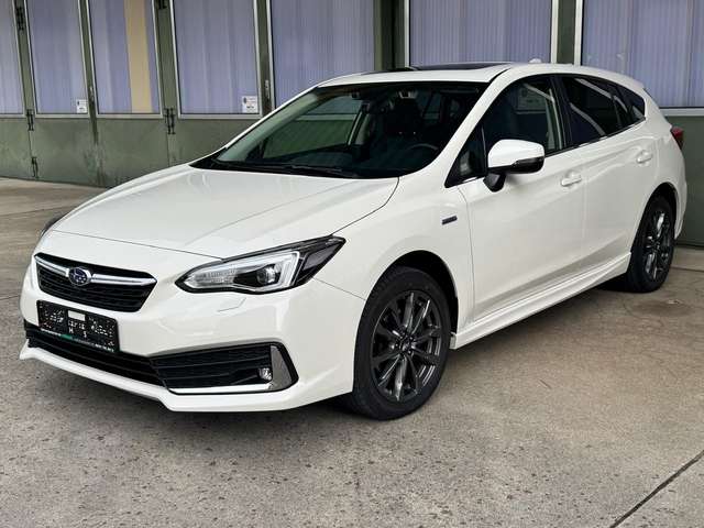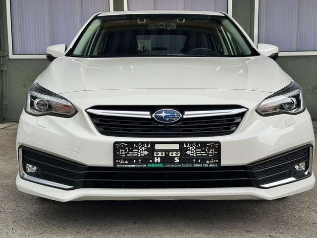 Airbag Fahrer-/Beifahrerseite und Seitenairbag vorn, Akustischer Fußgängerschutz (Außensound), Aufprallschutz rundum, Auto-Hold-Funktion, AUX-IN-Anschluss, Außenspiegel elektr. anklappbar, Außenspiegel elektr. verstell- und heizbar, Außenspiegel Wagenfarbe, Außentemperaturanzeige, Blinkleuchte in Außenspiegel integriert, Bremsassistent, Dachantenne, Fahrassistenz-System: Berganfahrhilfe, Fahrassistenz-System: EyeSight, Fahrassistenz-System: Fernlichtassistent, Fahrassistenz-System: Kollisionswarnsystem hinten, Fahrassistenz-System: Notbrems-Assistent, Fahrassistenz-System: Querverkehrs-Assistent, Fahrassistenz-System: Spurhalteassistent (Lane Assist), Fahrassistenz-System: Spurwechselassistent, Fahrassistenz-System: Totwinkel-Assistent, Fahrer-Informations-System (FIS) mit Farbdisplay, Farbdisplay (8,0 Zoll), Fensterheber elektrisch vorn + hinten, Fernentriegelung Tankklappe, Freisprechanlage Bluetooth, Frontkamera, Gepäckraumabdeckung / Rollo, Geschwindigkeits-Regelanlage (Tempomat) mit Abstandsregelung, Getränkehalter, Heckscheibe heizbar, Heckspoiler, Infotainment-System: SUBARU STARLINK, Innenausstattung: Interieurleisten Silber, Innenspiegel mit Abblendautomatik, Isofix-Kindersitz-System, Karosserie: 5-türig, Klimaautomatik 2-Zonen, Knieairbag Fahrerseite, Kopf-Airbag-System (Windowbag), Kopfstützen, Kühlergrill verchromt, Lenkrad mit Multifunktion, Lenksäule (Lenkrad) verstellbar, Leseleuchte, LM-Felgen, Mittelarmlehne hinten, Motor 2,0 Ltr. - 110 kW Mild-Hybrid, Navigationssystem, Parkbremse elektronisch, Pedale Aluminium, Reifen-Reparaturset, Reifendruck-Kontrollsystem, Rückfahrkamera, Rücksitzlehne geteilt / klappbar, Schadstoffarm nach Abgasnorm Euro 6d, Schalt-/Wählhebelgriff Leder, Scheibenwaschanlage, Scheibenwaschanlage hinten, Scheibenwischerenteiser vorn, Scheinwerfer LED mit dynamischem Kurvenlicht, Schiebe-/Hebedach elektrisch (Glas), SI-Drive, Sitz vorn links elektr. verstellbar (8-fach), Sitz vorn links höhenverstellbar, Sitzbezug / Polsterung: Leder, Sitzheizung vorn, Sonnenblenden mit Spiegel (beleuchtet), Sprachbediensystem Spracherkennung, Start-Stop-Knopf, Start/Stop-Anlage, Stoßfänger Wagenfarbe, Tagfahrlicht LED, Türgriff außen Wagenfarbe, Türgriffe innen verchromt, Verglasung getönt, Verglasung hinten abgedunkelt, Zeituhr (digital)