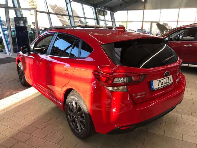 Airbag Fahrer-/Beifahrerseite und Seitenairbag vorn, Akustischer Fußgängerschutz (Außensound), Aufprallschutz rundum, Auto-Hold-Funktion, AUX-IN-Anschluss, Außenspiegel elektr. anklappbar, Außenspiegel elektr. verstell- und heizbar, Außenspiegel Wagenfarbe, Außentemperaturanzeige, Blinkleuchte in Außenspiegel integriert, Bremsassistent, Dachantenne, Fahrassistenz-System: Berganfahrhilfe, Fahrassistenz-System: EyeSight, Fahrassistenz-System: Fernlichtassistent, Fahrassistenz-System: Kollisionswarnsystem hinten, Fahrassistenz-System: Notbrems-Assistent, Fahrassistenz-System: Querverkehrs-Assistent, Fahrassistenz-System: Spurhalteassistent (Lane Assist), Fahrassistenz-System: Spurwechselassistent, Fahrassistenz-System: Totwinkel-Assistent, Fahrer-Informations-System (FIS) mit Farbdisplay, Farbdisplay (8,0 Zoll), Fensterheber elektrisch vorn + hinten, Fernentriegelung Tankklappe, Freisprechanlage Bluetooth, Frontkamera, Gepäckraumabdeckung / Rollo, Geschwindigkeits-Regelanlage (Tempomat) mit Abstandsregelung, Getränkehalter, Heckscheibe heizbar, Heckspoiler, Infotainment-System: SUBARU STARLINK, Innenausstattung: Interieurleisten Silber, Innenspiegel mit Abblendautomatik, Isofix-Kindersitz-System, Karosserie: 5-türig, Klimaautomatik 2-Zonen, Knieairbag Fahrerseite, Kopf-Airbag-System (Windowbag), Kopfstützen, Kühlergrill verchromt, Lenkrad mit Multifunktion, Lenksäule (Lenkrad) verstellbar, Leseleuchte, LM-Felgen, Mittelarmlehne hinten, Motor 2,0 Ltr. - 110 kW Mild-Hybrid, Navigationssystem, Parkbremse elektronisch, Pedale Aluminium, Reifen-Reparaturset, Reifendruck-Kontrollsystem, Rückfahrkamera, Rücksitzlehne geteilt / klappbar, Schadstoffarm nach Abgasnorm Euro 6d, Schalt-/Wählhebelgriff Leder, Scheibenwaschanlage, Scheibenwaschanlage hinten, Scheibenwischerenteiser vorn, Scheinwerfer LED mit dynamischem Kurvenlicht, Schiebe-/Hebedach elektrisch (Glas), SI-Drive, Sitz vorn links elektr. verstellbar (8-fach), Sitz vorn links höhenverstellbar, Sitzbezug / Polsterung: Leder, Sitzheizung vorn, Sonnenblenden mit Spiegel (beleuchtet), Sprachbediensystem Spracherkennung, Start-Stop-Knopf, Start/Stop-Anlage, Stoßfänger Wagenfarbe, Tagfahrlicht LED, Türgriff außen Wagenfarbe, Türgriffe innen verchromt, Verglasung getönt, Verglasung hinten abgedunkelt, Zeituhr (digital)