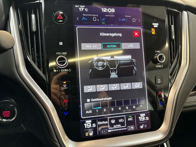Airbag Fahrer-/Beifahrerseite und Seitenairbag vorn, Anti-Submarining-Airbag Beifahrer, Auto-Hold-Funktion, Automatische Fahrlichtschaltung / Lichtsensor, AUX-IN-Anschluss, Außenspiegel elektr. verstell- und heizbar, Außenspiegel mit Einparkfunktion/Rückwärtsparkhilfe, Außenspiegel mit Kamera, rechts, Außenspiegel silber, Außentemperaturanzeige, Blinkleuchte in Außenspiegel integriert, Bluetooth-Schnittstelle, Bremskraftverstärker elektrisch, Dachantenne, Dachreling, Dachspoiler Wagenfarbe, Fahrassistenz-System: Antriebsmomentkontrolle (Torque Vectoring), Fahrassistenz-System: Aufmerksamkeits-Assistent (Müdigkeitserkennungs-Sensor), Fahrassistenz-System: Bergabfahrhilfe, Fahrassistenz-System: Berganfahrhilfe, Fahrassistenz-System: EyeSight, Fahrassistenz-System: Fahrer-Erkennung (Driver Monitoring System) erweitert, Fahrassistenz-System: Frontkollisionswarnung, Fahrassistenz-System: Kollisionswarnsystem hinten, Fahrassistenz-System: Querverkehrs-Assistent, Fahrassistenz-System: Sicherheitssystem mit automatischem Notruf (ERA GLONASS / eCall), Fahrassistenz-System: Spurwechselassistent, Fahrassistenz-System: Totwinkel-Assistent, Fahrassistenz-System: Verkehrszeichenerkennung, Fahrer-Informations-System (FIS) mit Farbdisplay, Fahrersitz mit ausziehbarer Oberschenkelauflage, Fensterheber elektrisch vorn + hinten, Freisprechanlage Bluetooth, Frontkamera, Gepäck-/Laderaumleuchte, Gepäckraumabdeckung / Rollo, Geschwindigkeits-Regelanlage (Tempomat) mit Abstandsregelung, Getriebe Automatik stufenlos - Lineartronic CVT (8-Stufen), Gurtstraffer, Handschuhfach beleuchtet, Heckleuchten LED, Heckscheibe heizbar, Infotainment-Center 11,6"-Display (Touchscreen), Innenausstattung: Interieurleisten Silber, Innenspiegel mit Abblendautomatik, Intelligenter Geschwindigkeits-Begrenzer, Isofix-Kindersitz-System, Karosserie: 5-türig, Kindersicherung, Klimaautomatik 2-Zonen, Knieairbag Fahrerseite, Kofferraumdeckel / Heckklappe elektr. betätigt (öffnen + schliessen, sensorgesteuert), Kopf-Airbag-System (Windowbag), Kopfstützen verstellbar, Kühlergrill Silberfarben, Kühlerjalousie, Aktiv, Lendenwirbelstütze Sitz vorn links, Lenkrad (Leder Komfort), Lenkrad heizbar, Lenkrad mit Multifunktion, Lenksäule (Lenkrad) verstellbar (vertikal / axial), Leseleuchte, Leuchtweitenregelung automatisch, Lichtassistent (Coming Home, Leaving Home), LM-Felgen, Luftdüsen hinten, Mittelarmlehne hinten, Mittelkonsole, Motor 2,5 Ltr. - 124 kW, Navigationssystem, Nebelscheinwerfer LED, Nebelschlussleuchte, NFC Funksystem (Near Field Communication), Notbrems-Warnblinkautomatik, Otto-Partikelfilter (GPF), Parkbremse elektronisch, Pedale Aluminium, Radstand 2745 mm, Reifen-Reparaturset, Reifendruck-Kontrollsystem, Rückfahrkamera mit Reinigungsdüse, Rücksitzlehne geteilt / klappbar, Rücksitzlehne mit Fernentriegelung umklappbar, Rücksitzlehnen neigungsverstellbar, Schadstoffarm nach Abgasnorm Euro 6d, Schalt-/Wählhebelgriff Leder, Scheibenwaschanlage hinten, Scheibenwischer mit Intervallschaltung, Scheibenwischerenteiser vorn, Scheinwerfer LED mit adaptiver Lichtverteilung, Scheinwerfer LED mit dynamischem Kurvenlicht, Schiebe-/Hebedach elektrisch (Glas), SI-Drive, Sitz vorn links elektr. verstellbar (10-fach), Sitz vorn links elektr. verstellbar (10-fach, mit Memory), Sitz vorn rechts elektr. verstellbar (8-fach), Sitzbezug / Polsterung: Leder Nappa, Sitzheizung hinten, Sitzheizung vorn, Sonnenblenden mit Spiegel (beleuchtet), Sprachbediensystem Spracherkennung, Stabilitäts-Programm X-Mode, Start-Stop-Knopf, Start/Stop-Anlage, Steckdose (12V-Anschluß) im Handschuhfach, Steckdose (12V-Anschluß) im Koffer-/Laderaum, Stoßfänger Wagenfarbe, Tagfahrlicht LED, Türgriffe innen verchromt, Türverriegelung automatisch, USB-Anschlüsse (2) hinten, Verglasung getönt, Verglasung hinten abgedunkelt, Zeituhr (digital)