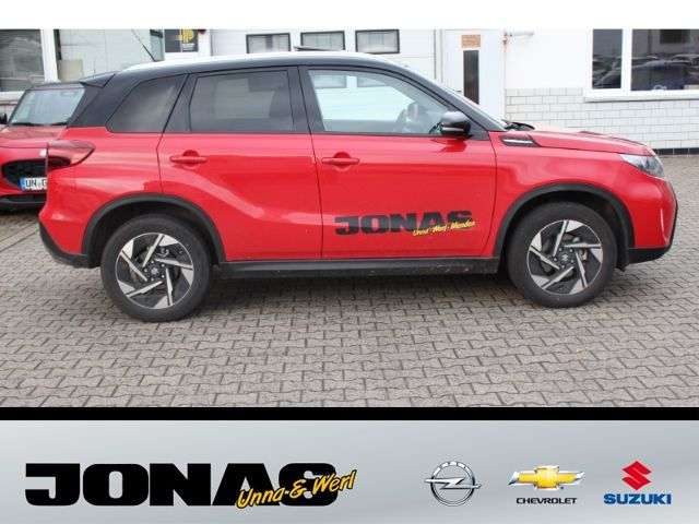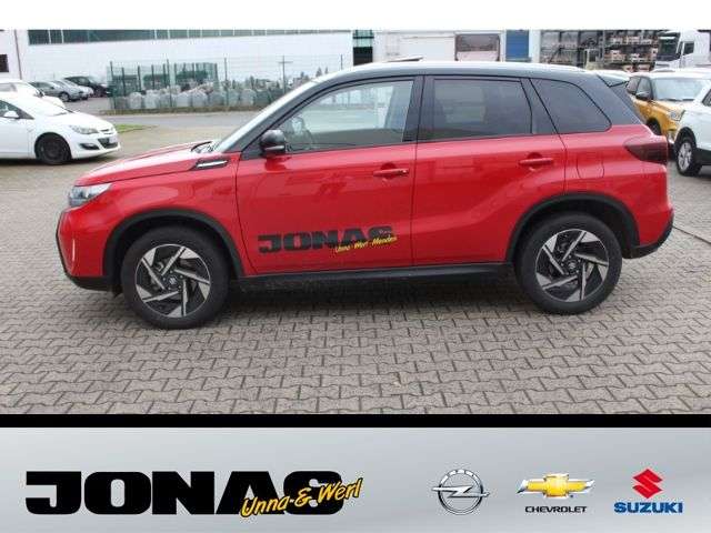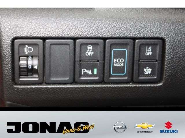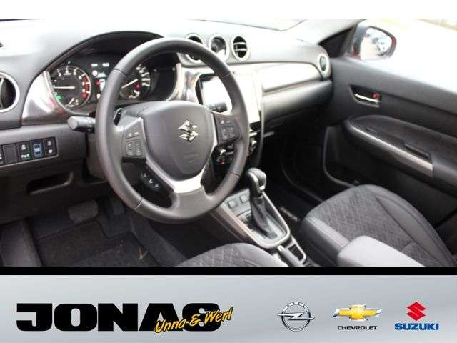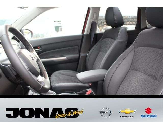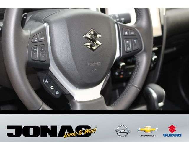 - Weiteres: - Audio-System (inkl.DAB+) m. Smartphone-Anbindung inkl. Navi,BluetoothFreisprecheinr. u. Lenkradbed. - 6 Lautsprecher - USB-Anschluss - Zentralverriegelung mit Funkfernbedienung - Keyless Start (schlüsselloses Einsteigen und Starten mit Starterknopf) - Start-Stopp-System - Außenspiegel elektrisch verstell- und anklappbar, beheizbar, mit integrierten Seitenblinkern - LED-Scheinwerfer mit automatischer Leuchtweitenregulierung - Lichtsensor - Nebelscheinwerfer - Scheiben rundum getönt - Privacy Glass (Heckscheibe und hintere Seitenscheiben abgedunkelt) - Regensensor - Außenspiegel in Wagen- bzw. Dachfarbe - Türgriffe in Wagenfarbe - Dachreling silberfarben - 17-Alufelgen poliert (Bereifung 215/55 R17) - Klimaautomatik mit Pollenfilter - Fensterheber vorn und hinten elektrisch - Panorama-Glasschiebehubdach elektrisch mit Sonnenblende - Adaptiver Tempomat (ACC) mit Geschwindigkeitsbegrenzer - Polsterung SUZUKI-TEX Mikrofaserstoff - Sitzheizung vorn (2-stufig) - Fahrer- und Beifahrersitz höhenverstellbar - Rücksitzlehne im Verhältnis 60:40, separat umklappbar - Lederlenkrad höhen- und längsverstellbar - Innenraumdekorelement (für Armaturenbrett) silberfarben mit Struktur-Design - Silberne Applikationen im Innenraum - Mittelkonsole mit Ablagefach und Getränkehaltern - Mittelarmlehne mit Ablagefach vorn - Seitenfächer vorn und hinten - Sonnenblenden vorn mit Schminkspiegel, beleuchtet - Farbiges LCD-Multifunktionsdisplay - 12V- Anschluß im Kofferraum - Kofferraumbeleuchtung - Elektronisches Stabilitätsprogramm (ESP) - Dual-Sensor gestützte aktive Bremsunterstützung (DSBS) - Müdigkeitserkennung - Spurhaltewarnsystem mit Lenkeingriff - Verkehrszeichenerkennung - Toter Winkel-Warnsystem - Ausparkassistent (RCTA-Warnung beim rückwärtigen Ausparken vor querendem Verkehr hinter dem Fahrzg.) - Alarmanlage - Berganfahrhilfe - Rückfahrkamera - Einparkhilfe vorn und hinten mit akustischer und optischer Anzeige - Airbags vorn für Fahrer und Beifahrer - Beifahrerairbag vorn, abschaltbar - Seitenairbags vorn - Vorhangairbags vorn und hinten - Gurtstraffer und Gurtkraftbegrenzer vorn - Sicherheitsgurte vorn höhenverstellbar - Reifendruck-Kontrollanzeige - ISOFIX-Kindersitzbefestigungen auf den beiden äußeren Fondsitzen - Reifenreparaturkit