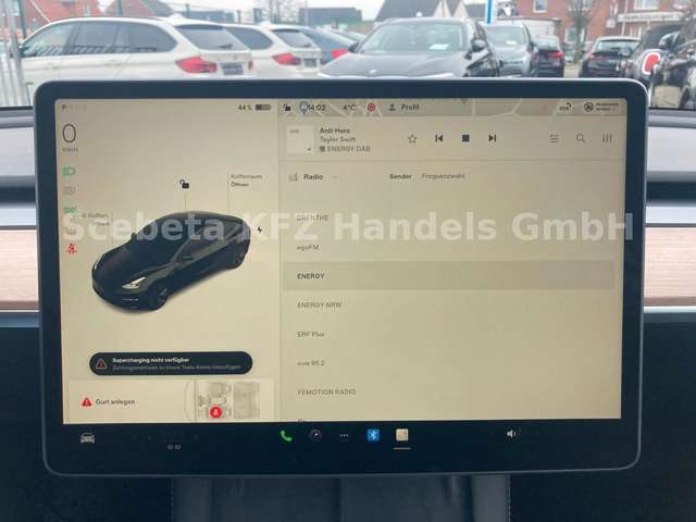 - Das Fahrzeug steht auf auf originalen 18 Zoll Tesla mit Allwetterbereifung
