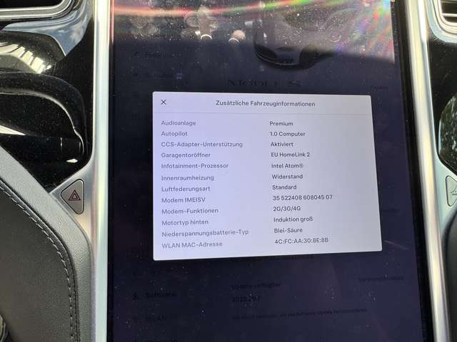 Zum Verkauf steht mein wunderschönes Tesla Model S 85. Das Fahrzeug ist sehr gut ausgestattet und hat Supercharging Free SC01 lebenslang! Es hat die Premium Ausstattung unter anderem die beste Soundanlage die ich in einem Fahrzeug gehört hab. Alcantra Dachhimmel in schwarz, großes Panorama Schiebedach was ohne Probleme funktioniert und dicht ist. Autopilot, CCS Upgrade überall kann geladen werden. MCU 2 Upgrade, Netflix, Disney, Twitch usw. Spotify ist abwerk im Fahrzeug und kostenlos lebenslang genau so wie Internet im Auto (Premium-Konnektivität). Querlenker vorne sind vor 20.000km neu gekommen. Tüv hat der Wagen im mai ohne Mängel bestanden. Hier mal die Auflistung der Ausstattung: