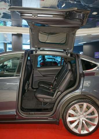 Zum Verkauf steht ein außergewöhnlich gepflegter Tesla Model X mit ausweisbarer Mehrwertsteuer, der Luxus, Leistung und moderne Elektromobilität in idealer Weise vereint. Das Fahrzeug überzeugt durch sein beeindruckendes Design, die charakteristischen Falcon Wing Türen und den großzügigen Innenraum, der höchsten Komfort für Fahrer und Passagiere bietet.