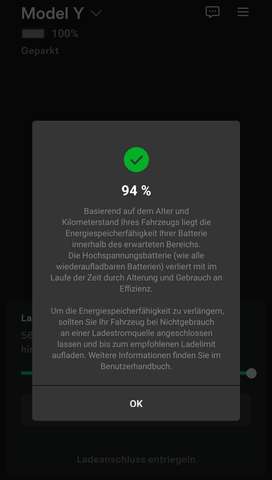 Batterie SOH laut dem Test am 10.10.25 beträgt noch 94%, siehe Bild