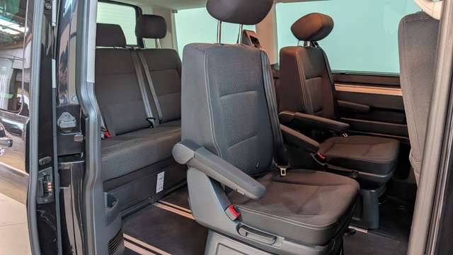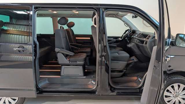 Audio-Navigationssystem Discover Media (Touchscreen-Farbdisplay), Ausstattungs-Paket Licht + Sicht, Außenspiegel elektr. verstell-, heiz- und anklappbar, Bodenbelag: Teppich verstärkt, Fahrassistenz-System: Einparkhilfe vorn und hinten, Fahrassistenz-System: Umfeldbeobachtungssystem (Front Assist) mit City-Notbremsfunktion, Fußmatten Fahrerhaus: Velours, Klimaautomatik Climatronic (Fahrerhaus + Lade-/Fahrgastraum), Kraftstofftank: 80 Ltr., Lackierung: Perleffekt-Lackierung, Ladekantenschutz innen Kunststoff und auf der Stoßstange schwarz, Multifunktionsanzeige Plus, Radkappen, Raucher-Paket, Seitenairbag / Kopfairbag (Curtain-Airbag) vorn und Kopfairbag (Curtain-Airbag) hinten, Sitze im Fahrerhaus: Fahrer- und Beifahrersitz heizbar, Sitze im Lade-/FG-Raum: 1.Reihe, 2 Drehsitze, Sonnenschutzrollo im Fahrgastraum, Verglasung hinten abgedunkelt, Zuziehhilfe für Heckklappe, Zuziehhilfe Schiebetür rechts