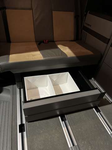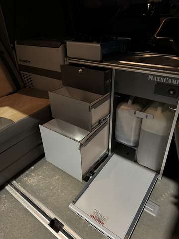 Die Möbel sind in 3 Modulen von MaxxCamp, der Ausbau kann nach Belieben herausgenommen werden.