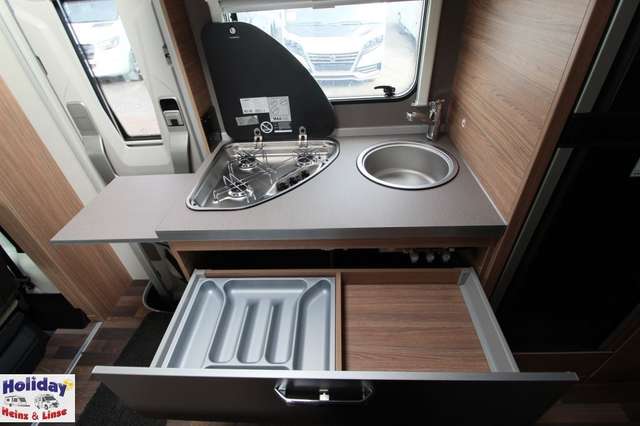 - Liegeflächen: Alkovenbett (210x140); Bug (184x100); Heck (211x74; 194 x 76)